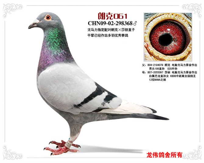 龙伟鸽舍位于张掖市甘州区,鸽舍自建立以来本着高起点出发,从全国各地引进了高质量种鸽和外籍原环鸽,种鸽血统有:安德烈.勃默德,电脑.戈马利,修斯肯.冯莱尔,甘纳斯,吐尼尔,凡龙超级73,考夫曼,桑杰士,VIP,奶酪,穆利门,盖比,盖斯彼德斯,詹森,巴滕伯格,贝克詹森等。愿于广大鸽友相互学习切磋,共同进步。 联系电话:15009360004