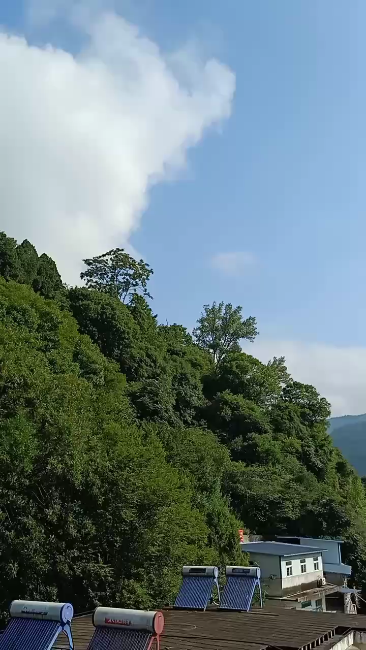 雨后的天空格外秀美,连绵的山脉翠绿翠绿的。