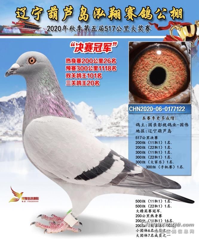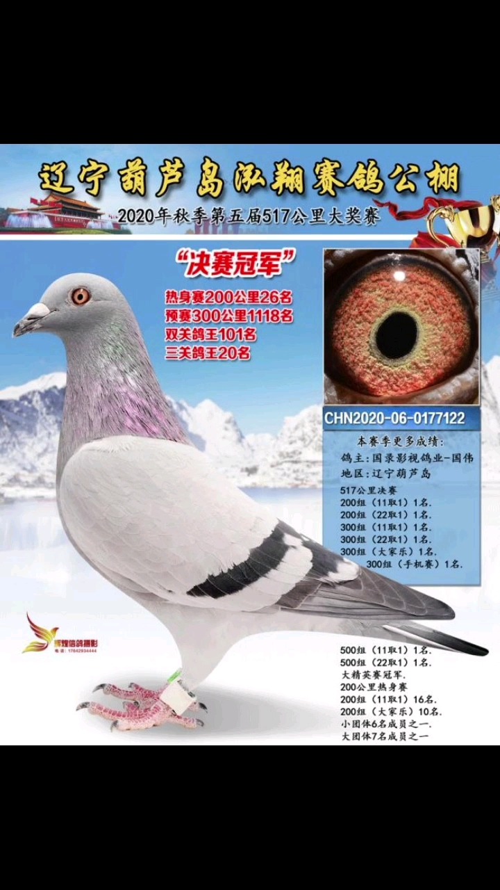国录影视鸽业,第三批幼鸽现开始预订: 1:20年决赛冠军母亲预赛8名,20年忠盛决赛24名父亲双关鸽王6名,三关鸽王亚军,四关鸽王冠军,神州辉煌加站11名,同父母:每羽1w 2:,20年决赛亚军母亲,300公里7名,同父母,5000 3:,神州辉煌决赛89名,400亚军,加站8名同父母:5000 4:,决赛6名,双关鸽王亚军 ,开尔决赛119名同父母5000 5:,19年决赛季军,精英赛冠军,三关鸽王季军,同父母,5000 6:,19年三关鸽王冠军同父母,5000 7:20年决赛冠军同父母,每羽1w 8:,20年福星阳光车赛双关鸽王冠军同父母,2000 9:20年金福300公里4名,车赛冠军同父母,3000 10:20年金福420公里7名,车赛亚军同父母,3000 11:决赛,25名,29名,22名44名同父母,每羽2000 12:还有大部分,高位成绩鸽子代:季军x四关鸽王冠军,3000,决赛5名x22名的2000。8名,12名,37名,44名…子代每羽1000 电话:微信15502699090