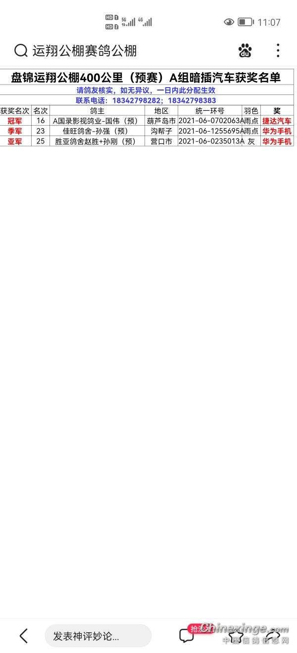 以上信息由鸽舍自行提供,该鸽舍负责信息内容的真实性、准确性和合法性。