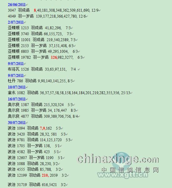 相信巴特逊的以后的赛鸽生涯会越来越好,赛鸽天堂网预祝他明天取得更辉煌的成绩!