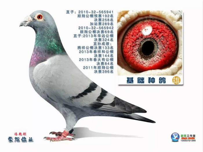 豪旭鸽业,位于河南安阳,安阳为河南省地级市,简称殷、邺,河南省最北部,地处山西、河北、河南三省交汇处,西倚太行山,东连华北平原,是豫北区域性中心城市。本鸽业自建棚以来,引进名家铭鸽、高位获奖鸽多羽,打造高质量的种鸽团队,建造的一流鸽舍,清洁明亮、高雅前卫,2010年参加公棚赛,我愿以鸽为媒,诚心结交天下鸽友,相互交流鸽经,共同提高、共同进步、共同发展。联系电话: 13938686907 ……