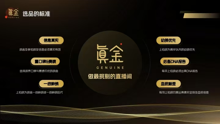 【真金拍卖】由鸽界著名媒体人罗汉宋创建于2022年,秉承着“真”和“金”的初心理念,致力于为广大鸽友严选优质可靠且实战的超级种鸽,通过口碑评价、赛绩选拔、血统筛选、DNA亲子检测以及上手评估五重筛选,确保每一羽上拍鸽具备卓越的竞技实力和超强的基因遗传。