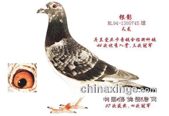 银色子弹slIver Bullet(NL94~1380746),银色影子的同窝雄,本鸽参赛37次,37次入赏,并获奥尔良、斯特朗比克、伊坦布斯、坎堤里4次冠军,其孙代,曾孙代都获无数次冠军。