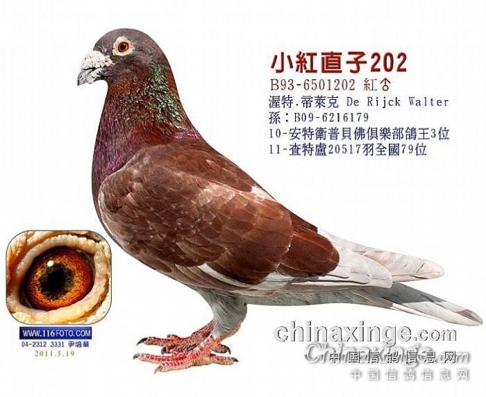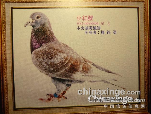 四川成都某强豪鸽舍使翔“特比”号全兄弟“201”直子B04-6244772直接做出2006年四川金鹰公棚决赛冠军,2006年山西红太阳公棚决赛冠军!(注:这两羽冠军为同一窝鸽)。
