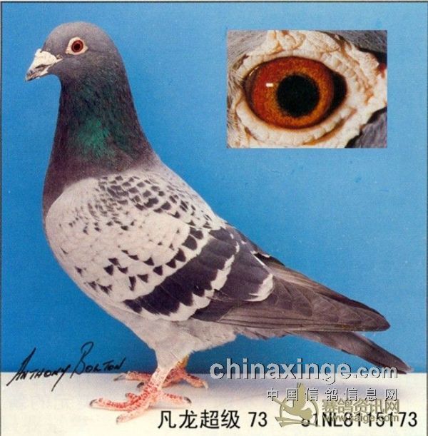 “超级73”,此路鸽子中等体形,较文气,经常雄鸽呈雌鸽相,但是抓在手里骨架坚硬,小时较丑,但过几个月之后,会变得漂亮。雄鸽健壮、结实;雌鸽紧凑、柔软;鼻头不大,额头笔直;从正面观看感觉额头挺细长;“超级73”前胸不很宽,龙骨不粗,但较坚韧,感觉有点像纺锤形,在手里感觉非常壮实。眼睛以黄眼砂居多,也有不少白底砂,中细眼砂,眼砂很亮,给人很厚实的感觉。此路鸽子在500至700公里左右都易获胜,它们的爆发力没有詹森鸽大,但不同的是它的稳定性好,是速度与耐力兼得的鸽系。