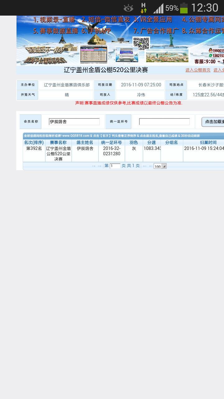 鸽舍赛绩