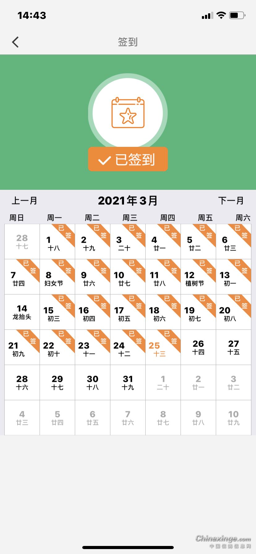 签到了