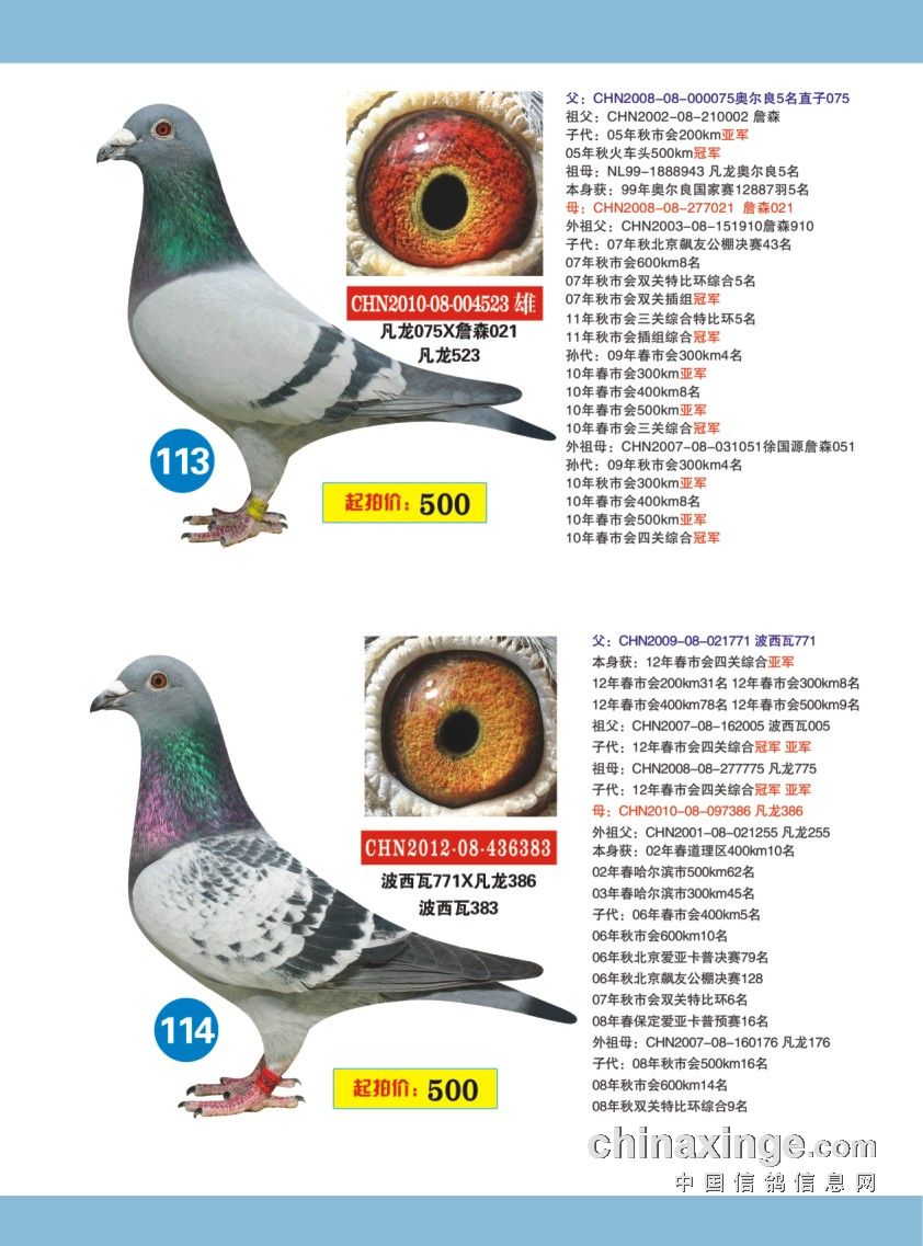 拍卖鸽图片资料: