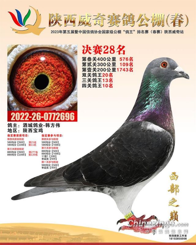 酒城位于陕西省宝鸡市凤翔县柳林镇,已地下水含有丰富的矿物质,成为中国四大名酒西风酒的故乡,也是著名景区灵山的所在地,酒城鸽业就建在柳林镇街道,由于对信鸽的爱好,2013年开始引进种鸽进行养殖,本人在柳林镇街道有西风酒专卖店,凤香缘烟酒茶庄,欢迎朋友们做客品偿。地址;凤翔县柳林镇柳林村三组电话;13772635986……