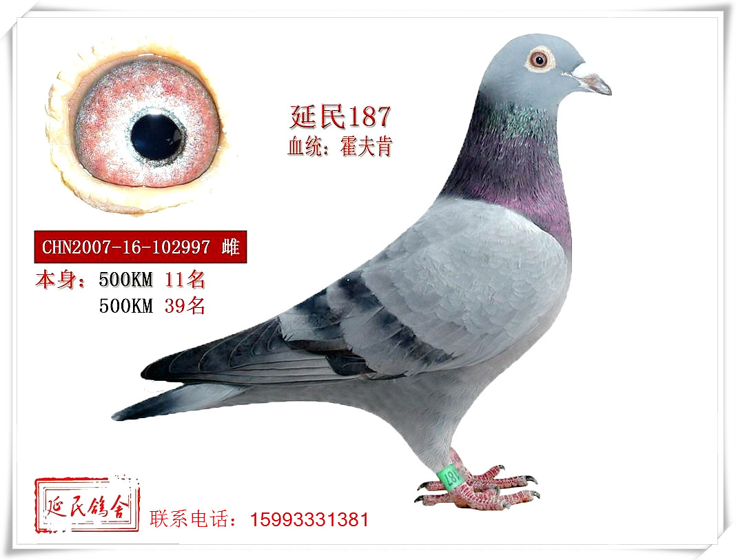 欢迎来到姬延民鸽舍,经过多年的赛场检验已经形成了自己的风格,在300--1000的空距都有上佳表现,有速度归巢稳定.本鸽舍现有种鸽拿破仑号.霍夫肯.林波儿.威廉.等众多名家赛鸽。QQ270881213 电话:15993331381……