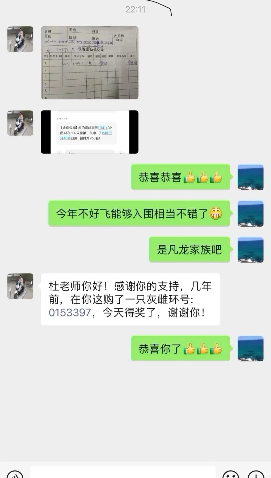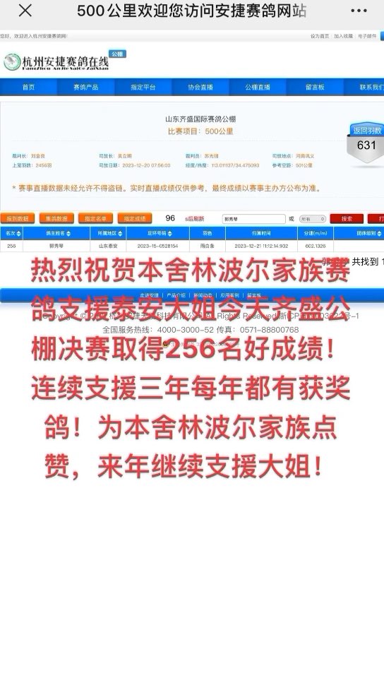 热烈祝贺本舍林波尔家族赛鸽支援泰安大姐今天齐盛公棚决赛取得256名好成绩!连续支援三年每年都有获奖鸽!为本舍林波尔家族点赞,来年继续支援大姐!