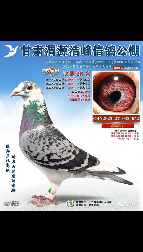 热烈祝贺甘肃好兄弟用本舍林波尔家族种鸽后代作育出渭源浩峰公棚决赛28名好成绩,期待明年再创佳绩!获奖鸽照片欣赏!