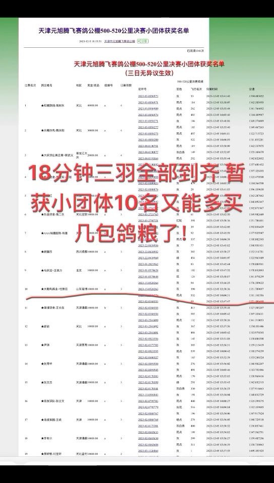 天津元旭公棚决赛获奖鸽照片欣赏为本舍奶酪家族和林波尔家族点赞!记录这辉煌时刻!鸽飞一滴血家族实战的魅力,赛绩说明一切!