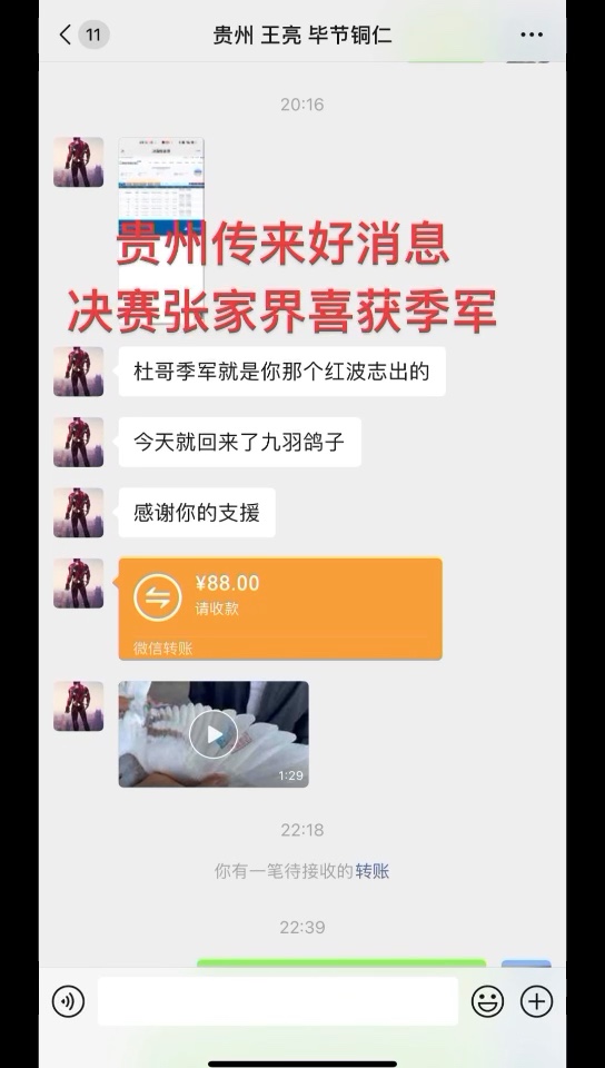 热烈祝贺贵州贵阳好兄弟用本舍种鸽后代300公里指定100元组200元组外彩冠军,鸽飞一滴血赢钱才是硬道理!