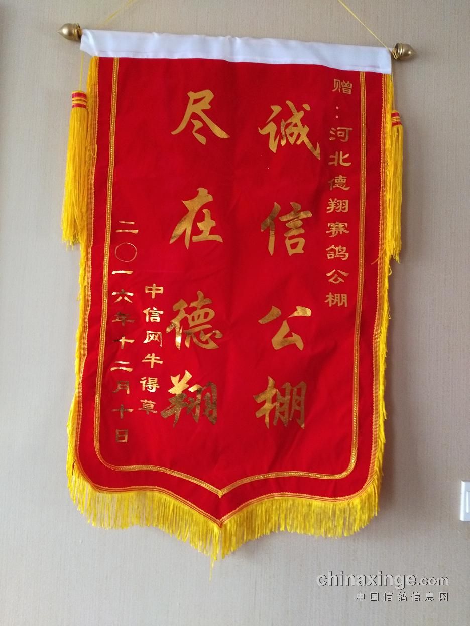 德翔诚信,鸽友赠送锦旗!图