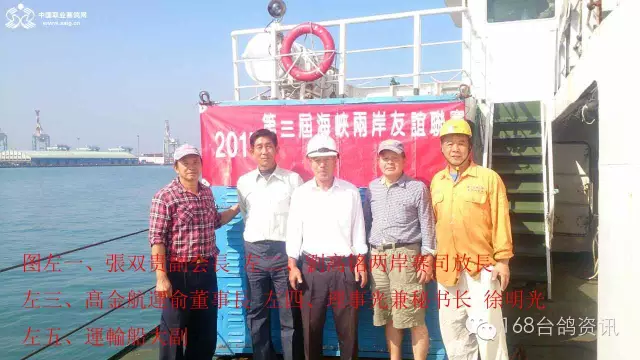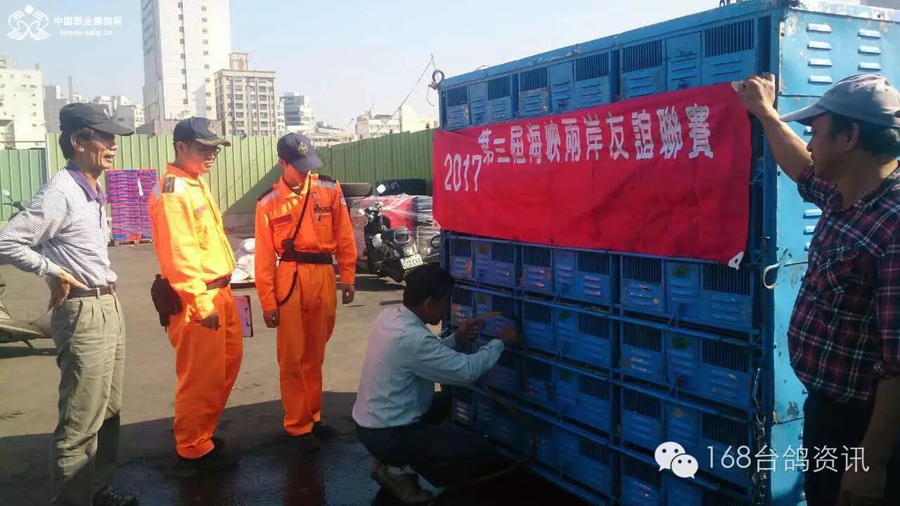 大陆 加强赛暨第三届海峡两岸多省联赛、11月24号陆续去各地集鸽,大陆方是东北大庆市1800公里5羽,山东高唐44羽,山东济南二个协会25羽,山东潍坊火车头24羽,山东青岛44羽。江苏沭阳俱乐部58羽,江南淮安96羽,江苏扬州166羽,江苏无锡109羽,江苏江阴66羽,南京海峡两岸赛鸽中心333羽。福建宁德,福建福鼎,福建霞甫三市共48羽,常熟市211羽,昆山56羽,张家港40羽,计1325羽。已全部集中到达舟山码头出海准备飞战。
