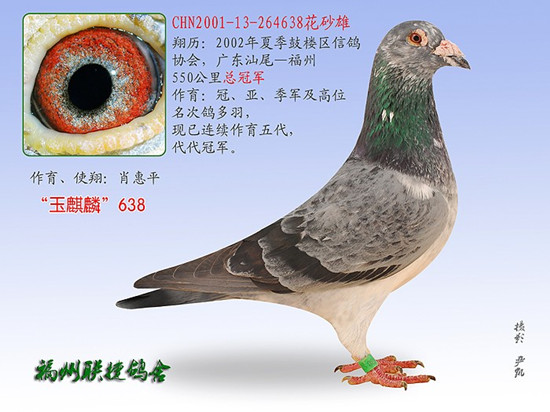 培养高品质赛鸽,打造自己的品牌以玉麒麟(2002年鼓楼信鸽协会夏季汕尾~福州550公里总冠军)为轴心凡王路易、杨阿腾、阿里维什和詹森血统鸽为过桥鸽的育种模式,培育出了一路300~800公里好天气快,坏天气稳的鸽系,业余时间驯养,成绩发挥稳定,争取新赛季更加生龙活虎获得更好的成绩与大家一起分享……… 我爱赛鸽,尊重鸽友,希望鸽友在交往中多一份谅解,多一份友谊,多一些欢声笑语,但愿天下鸽友一握手、终生……