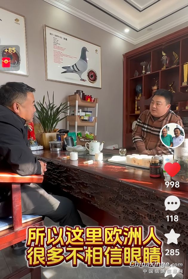 后期我找谁呢?吉林克斯家,吉林克斯给我讲一个故事,他说你知道我鸽子的妈妈是怎么丟的吗?我说怎么丟的?他说当年生完鸽子以后,一个中国的大师在看眼睛,说这鸽子不适合做种适合参赛,结果生完鸽子以后,拿着妈妈就去参赛了,结果丟了!结果格斗士成为世界铭鸽,不适合做种,它就生了世界铭鸽格斗士,这是吉林克斯告诉我的。他说当年我就已经让它做种,不要让它飞了,那鸽友非说它是赛鸽,还要再飞能飞全国前三,全国冠军,结果飞丢了,结果出一个格斗士就没了,所以格斗士很少有全平辈,没生过几个嘛,所以他就告诉我,他很奇妙很荒谬,所以欧洲人很多不相信眼睛。(未完待续)