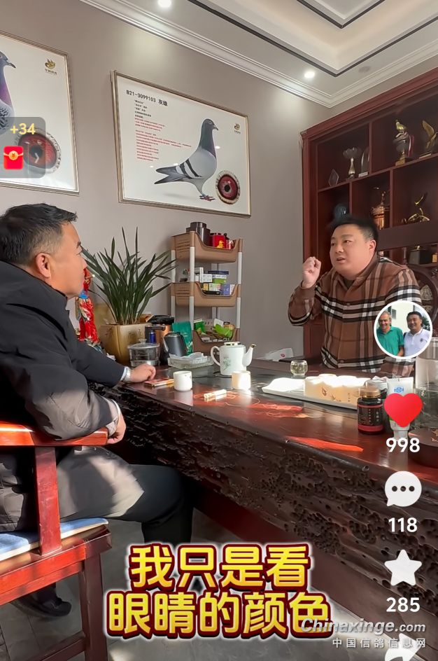 【第3343集】你相信看鸽眼能看出什么吗? 有人说看鸽眼能看出是种鸽型还是赛鸽型,也有人说看鸽眼可以看出鸽子能飞什么赛距,看了下面这段陈亚军说的话可能会颠覆你的认知。 以下内容根据景玉李卿《陈亚军揭秘鸽眼与夺冠》视频整理。 老外不太注重眼睛,为什么我不太注重眼睛?这也受到老外的影响,基本上我是受到老外的影响。因为什么呢?这是文斯特拉的父亲当年给我说了一句话,包括吉林克斯也跟我说过一句话,他们给我举过很多例子,我说给你们听一听,你们就明白了。当年我去文斯特拉家买鸽子的时候,我也是拿着灯看眼睛,其实我看眼睛不是看什么点眼虫,什么志毛,我看不懂我只是看眼睛的颜色、砂型,他就在那笑。他说陈先生你能看懂?眼睛能出冠军吗?我说我就爱好看看,他说我就不明白,很多人到我家来买鸽子,就带了一大堆仪器在这里看眼睛,他其实也好奇嘛,他说你能告诉我从这里面看怎么飞冠军吗?其实他是在问不是在质凝,我说我不相信这个,我也看不懂,然后我就问他,你对眼睛有什么看法?他说“好的眼睛不一定是一个好种鸽和好赛鸽,但是好的种鸽赛鸽会有一双好眼睛。”我说你这话说的矛盾,你这等于没说。然后他说我的大儿子,现在已经走火入魔了,我说为什么?他是一南方人(是谁我也知道,这也不说名了),每次到我家来就教我儿子看眼睛,给我儿子看了,我儿子把我鸽王冠军跟全国冠军淘汰,他就跟我说这个,淘汰了他的全国冠军跟全国鸽王冠军,说眼睛里面没点东西,说这个中国人很奇妙看鸽子,我明明已经飞全国冠军全国鸽王冠军,已经证明它是好鸽子了,为什么要淘汰它呢?所以我们很多要淘汰的鸽子,我儿子告诉我这是最好的鸽子。我说我对眼睛不研究,我只看颜色配对,只是参考一下,我说我不相信那个,他说他也不相信,这是文斯特拉。