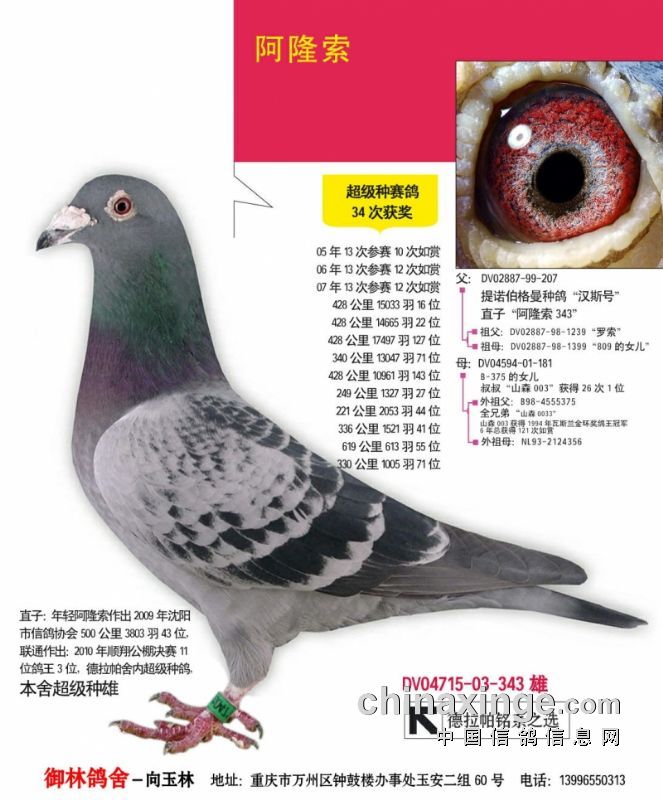 本人自幼喜爱信鸽,从2004年开始引进信鸽。 主要品系有:李巴克.彼波曼.修士肯.冯莱尔.史妙特詹森.势山.克拉克詹森.安德列.德拉帕。 希望能和全国的鸽友一起交流学习 QQ:16965854002005年10月1号幼鸽特比放飞重庆获得万州区信鸽协会第七名(放一归一)2005年秋季获得云阳信鸽协会、天城信鸽协会、龙宝信鸽协会特比环放飞广元亚军2……