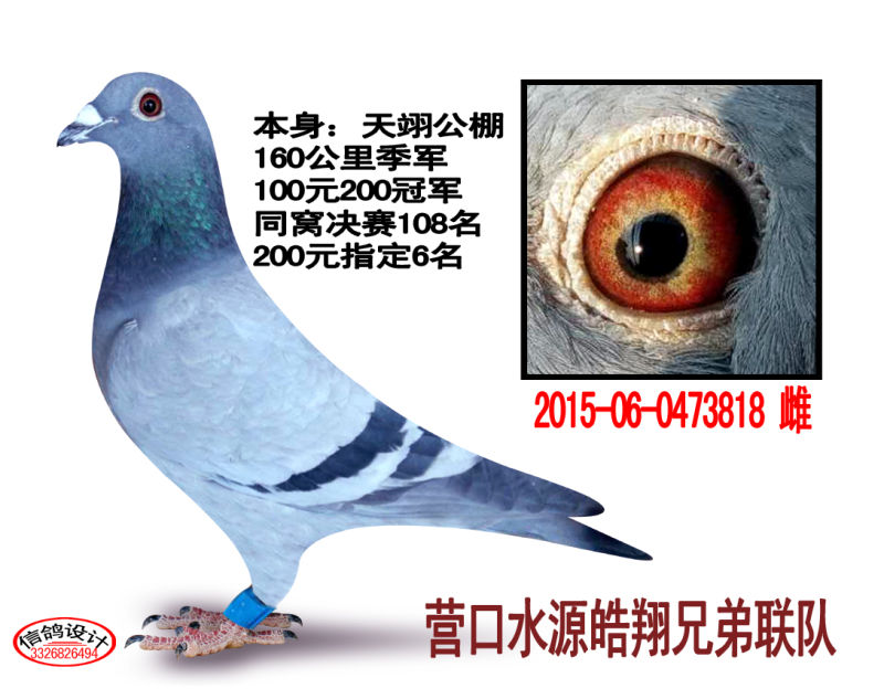 鸽舍赛绩 本人从小喜欢养鸽 。2011年隆翔公棚预赛134名决赛70名是同一羽。决赛184名377名只送三羽。 。2012年隆翔公棚200公里飞32名。300公里隆翔公棚51名500公里飞352名450名。2013年通辽兄弟公棚500公里飞203名’北镇金龙500公里26名指定鸽500元亚军。15年天翊公棚160公里季军,100元200元指定冠军。预赛81名。决赛108名200元指定6名