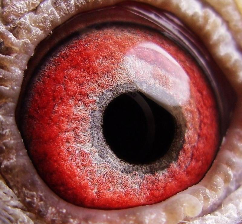 (一)眼神 鸽子的眼睛可以简化着看,“眼神配”是“鸽眼配”中最高的境界。 鸽子的“眼神”也分好多种,不一定看似聪明的就是好的,只要鸽子眼神能够表现出“专注”的神态就已经不错。除了“眼神”以外,我对眼睛的要求,也只是保留了“在视力的强弱和所能适应的视觉环境上”的那些部分,这主要指眼房水、眼砂、眼志和瞳孔;而且也不是每羽都看,如果第一关“眼神”就不吸引我,再看其它的又有何用? (二)眼房水 眼房水的好坏对鸽子的视力和环境适应性起很大作用,在一定程度上也起决定飞翔速度快慢的作用。我们常说的眼睛要求“干、老、油、亮”等四个标准,实质都是眼房水在起作用。不“干”的眼睛,那是父母鸽的眼睛配错了,这样眼睛的鸽子飞不了多长时间;不“老”的眼睛,要么它没有参加过任何赛事,要么它的眼房水成色欠佳;缺“油”的眼睛,是眼房水的成份太单一,这对不同赛况的适应性会差些;少“亮”的眼睛,是眼房水晦涩、“浑浊”,这种鸽眼的视力不够强。 (三)瞳孔 1、瞳孔的大与小 在多数人的认识中,鸽眼瞳孔应该越小越好,我不认为这个看法是正确的。瞳孔是光线和景物进入眼睛的窗口,瞳孔放大时肯定比瞳孔缩小时进入的光线和景物面多些;鸽子飞行中进入鸽眼视觉的景象面越多,对其在高速飞行中的安全性就越有保障。不信可以做个试验,我们把眼睛眯缝起来看东西,有些东西就肯定看不到或看不清楚。鸽子也是一样,睁大“眼睛”(实际是睁大瞳孔)才能看得更远和更清楚,由此才能做到尽早发现天敌或者避免撞电线。 2、瞳孔的扁与圆 有的人要求鸽眼的瞳孔越圆越好,我觉得这个标准对于鸽子来说是太牵强了,这是拿人眼的标准来衡量鸽子。人的两只眼睛都长在脸的前面,看东西是从正面直着看,这样瞳孔形状当然就是圆的。非肉食类的鸟类,包括鸽子等则不同,它们的眼睛长在脑袋的两侧,稍向前翻一点,这样视野较大,对其生存有利。也是由于它们的眼睛基本是对着长的,向前看景物时,实际是需要斜着眼睛看。斜眼时,瞳孔向前移动,挤压前部的眼砂,拉伸后部的眼砂;这样看的时间长了,瞳孔就会由正圆形变成椭圆形,瞳孔位置也不在眼睛中央,而向前下方偏移。 严格来说,每羽鸽子的瞳孔形状都会有些差异,瞳孔的大与小、扁与圆之间其实并没有什么特定的优和劣,是否优或劣,应该视每个鸽子的实际情况而定;当然,个人喜好则是另一回事。可信和能够实现的一点是,依瞳孔在鸽头上长的位置和变形程度,再结合眼眼睛上的一些其它“印记”特征,鉴眼高手是完全可以比较准确地识别手中的鸽子是否飞过,以及翔历的多少或难、易程度。 (四)眼志 我对眼志的要求是因鸽而论的,先从考察血统和遗传情况的角度去考虑,再挑一挑眼睛倒是必要的。 所谓“合格”的种鸽眼志,一般的规律是:耐力鸽眼志除应具备一定的厚度外,同底砂一样,还应有很强的颗粒感和多彩、漂亮的金属色;速度鸽眼志色彩允许单一,也可以缺乏颗粒感,但必须有适当的厚度和宽度(见照片提示)。速度鸽的眼志缺乏宽度时,在瞳孔收缩、变化,拉动整个虹膜移动时,容易引起疲劳。 (五)内线扣 内线扣是控制瞳孔收扩运动的肌肉之一,不同品系的鸽子之间的确会在色彩、形状上有某些差异,它也会随年龄的增长有所变化,但其生理功能也就如此。 60年代末我曾一度研究过它,现在它对我早已不那么重要了。如果我使用放大镜看眼睛的话,捎带着看它,也只是以纯“欣赏”的感觉浏览一下;因为它没有给我挑选鸽子带来绝对准确、有效的帮助。 (六)眼砂 眼砂由眼中的毛细血管所组成,是供给鸽眼营养的管道,它有粗、细、厚、薄和不同的形状及色彩上的差异,这些不同的性状是由地区差异和人为培育因素所造成的。鸟类不是这样,任何一种野生的鸟,它们的眼砂都只是一个模式和比较单一的色彩,你分不出子丑寅卯来,也不存在所谓优劣的差别;不同品种之间才会存在差异,这是“血统”遗传的结果。 信鸽则不同,在不同国家或地区,受地形、地貌、气候和人为设定的差异较大的赛距等因素的影响,已经产生了许多个“亚种”,自然它们眼睛的差异也就变得很大,特别是眼砂;这是我们不得不承认的事实,也才由此产生了以“眼”鉴鸽的方法。如果信鸽之间没有交流,也只在平原地区进行一个距离的赛事,长此下去后,眼砂的差别会逐渐缩小,相信再看鸽眼才没有什么实际意义了。 对待任何一种技法,我们不能因为不明白就完全否定它,但也不能以一个尺度去衡量所有的东西,更不能钻牛角尖以点盖全;对眼砂的鉴别技法亦应如此。 回到对眼砂的实质性探讨上来。眼砂的粗细对供血环境肯定是有所差异的,粗的比细的供血量大,这意味着粗砂更适合高速鸽的眼睛;眼砂的色彩与血液的含氧量成份有关,也意味着眼砂色彩鲜艳的适于高速鸽;眼砂的结构形状(与血统、速度有关),以及布局、间隙(飞行中,在瞳孔长时间高频率的快速收扩下,眼砂之间留有一定的间隙,不易造成眼肌疲劳)和厚薄(薄砂利于眼砂的快速收扩运动)等,同样也与适飞不同的距离或赛况有关。比如胡本、詹森、詹吉、凡龙、桑杰士、戈马利、林波尔等的鸽子以速度见长,它们的眼砂要么面砂稀薄,要么间隙较大,并有色彩较鲜的特点;杨阿腾、凡布利安娜、古柏和西佛.托依系的鸽子擅长远距离,以及中长距离的马克.罗