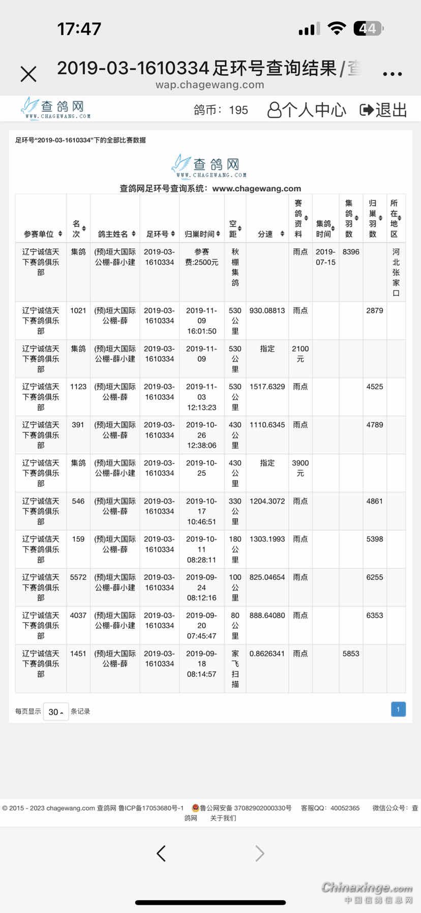 鸽舍赛绩