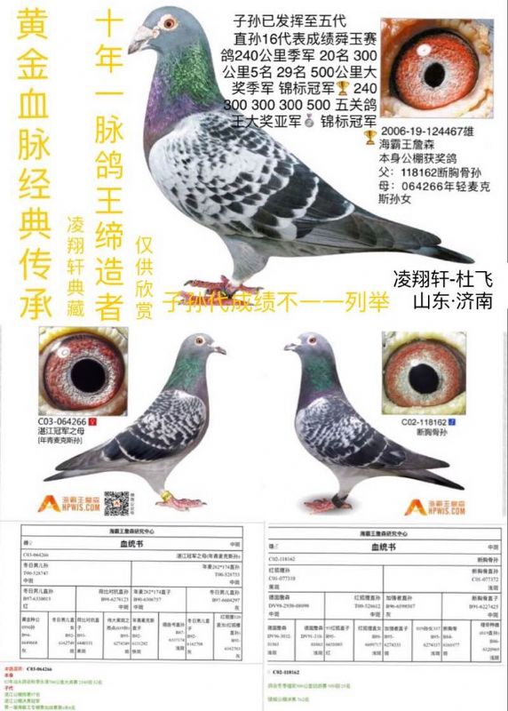 03年春获历城区东部赛鸽联合会400公里 5名,7名,8名,9名13名,27,名...500公里 24名,29名,32名,42名.... 03年秋济南赛鸽家俱乐部市东分部300公里 5名,14名,19名,26名... 04年春济南鲁正赛鸽中心300公里 9名,10名,11名... 04年秋济南赛鸽家俱乐部市东分部300公里 9名... 04年秋济南鲁正赛鸽公棚预赛65名本舍仅送一羽... 05年春济南赛鸽家俱乐部市东分部300公里 10名,24名...500公里 亚军,5名,22名... 05年秋济南赛鸽家俱乐部市东分部300公里 5名,23名 ... 济南市信鸽协会500公里 76名... 济南黄河公棚预赛88名,决赛97名... 06年春济南赛鸽家俱乐部市东分部300公里 亚军,5名,19名... 06年秋济南赛鸽家俱乐部市东分部300公里 季军,5名,9名,12名..... 07年春济南市赛鸽家俱乐部市东分部300公里 6名,7名... 07年春济南市赛鸽家俱乐部市东分部500公里4名,11名... 07年春济南市齐鲁顺达飙鸽俱乐部500公里43名(2750羽)... 07年春云翔公棚160公里25名,预赛24名,决赛44名(一羽鸽成绩)07年秋新世纪公棚决赛189名,276名(仅送两羽)...07年秋济南市历城区东部赛鸽联合会300公里42名.420公里20名.双关16名...08年春济南飙鸽俱乐部300公里大奖赛87名集鸽3700羽济南东联300公里60名,450公里40名集鸽1000羽等!!!!!!