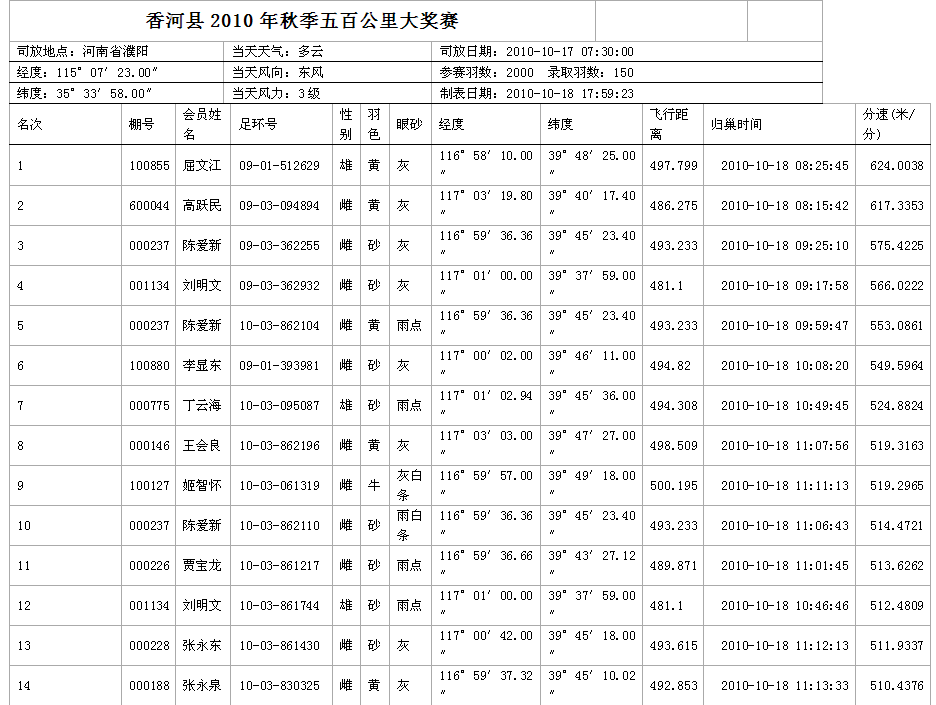 | ·香河鸿鹄赛鸽俱乐部聚宝盆规程 (8005次) |