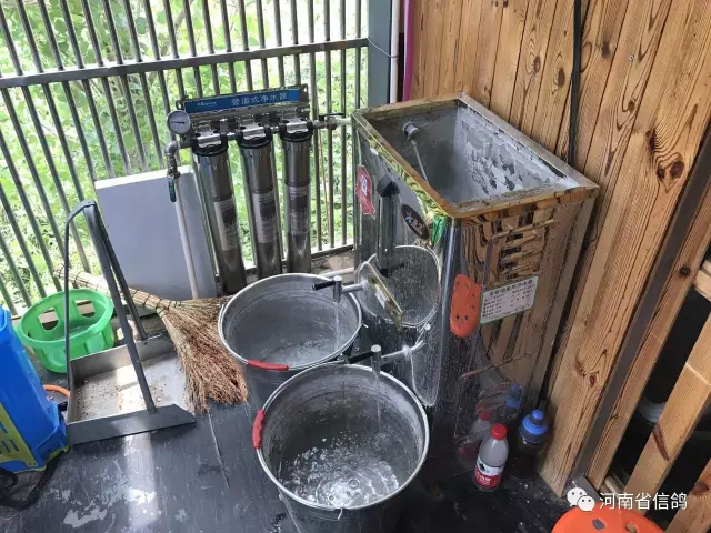 进棚,首先看到的是鸽子饮用水处理系统 ▼
