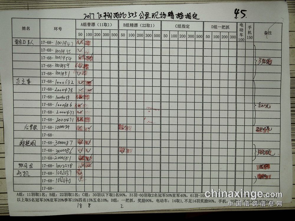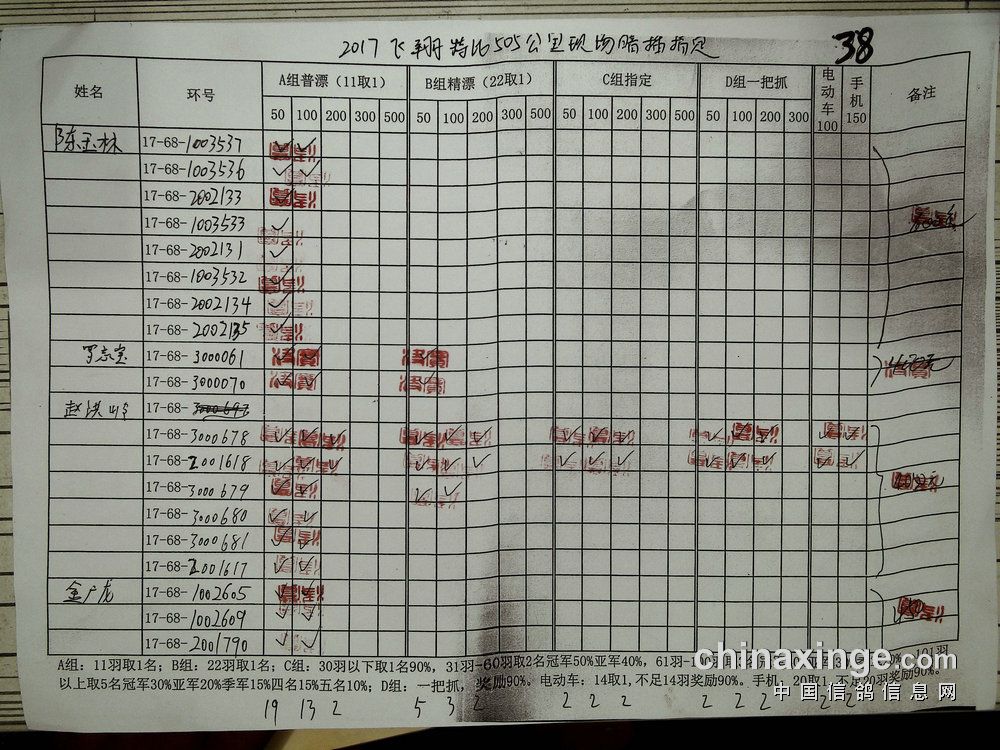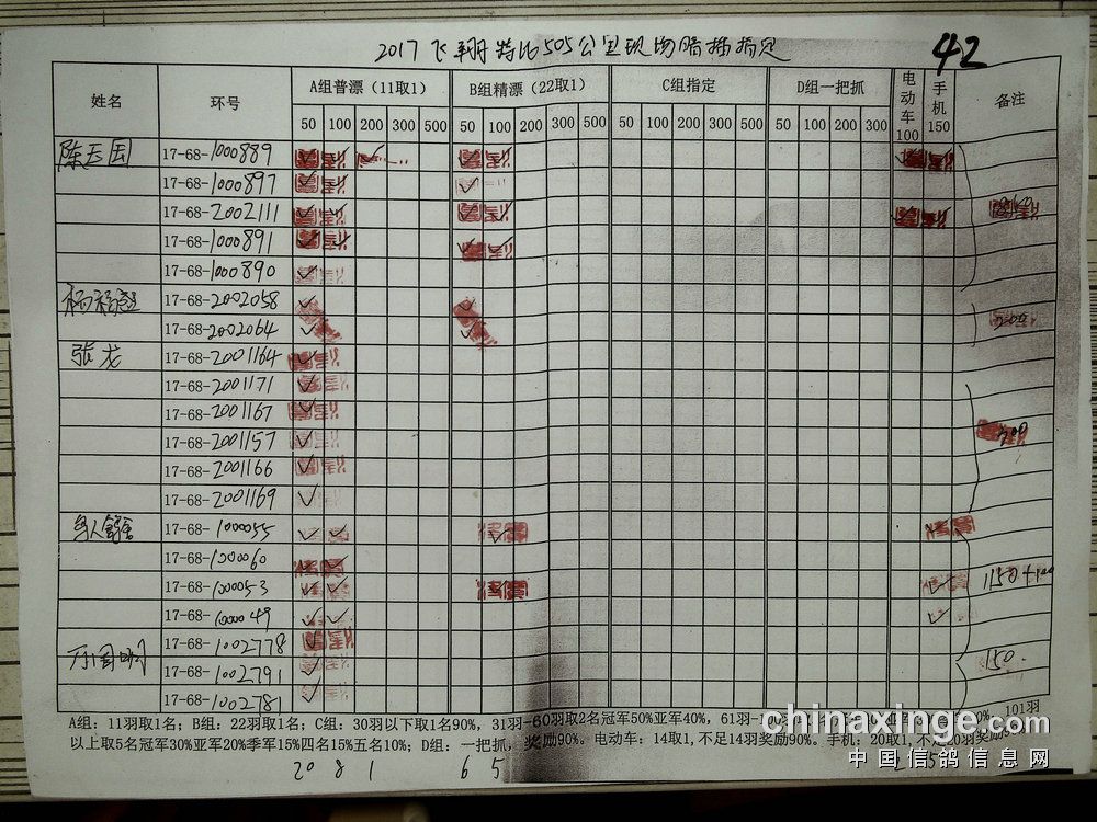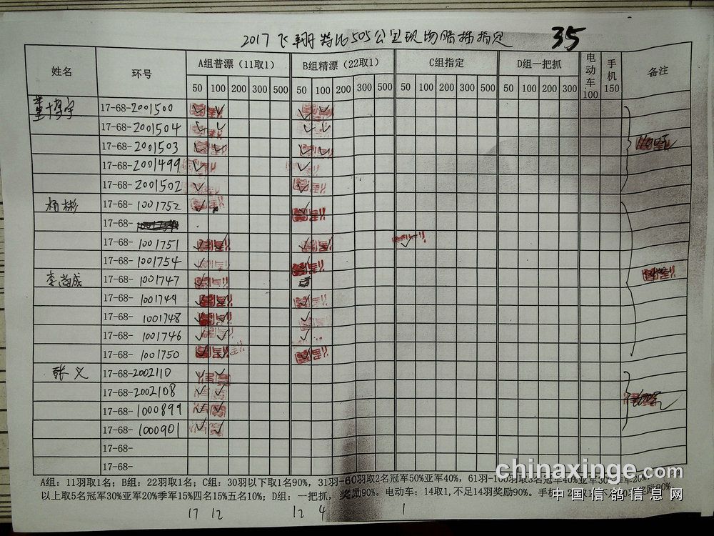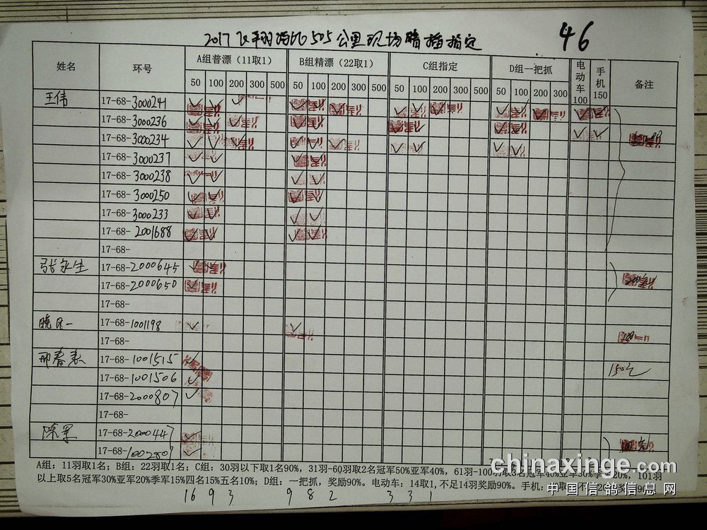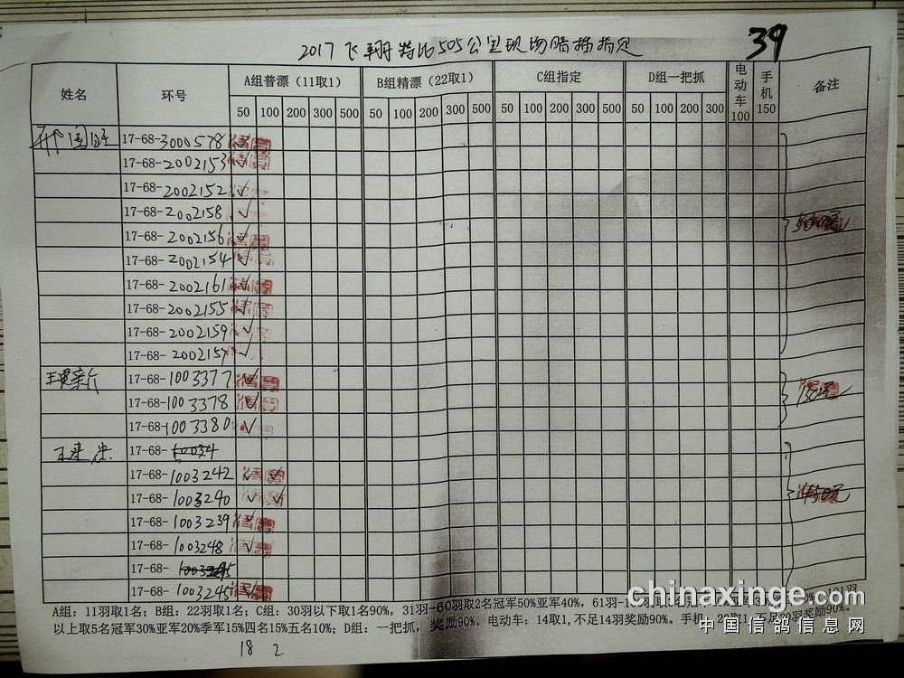 2017秋季飞翔赛鸽中心505公里-特比现场指定原单二