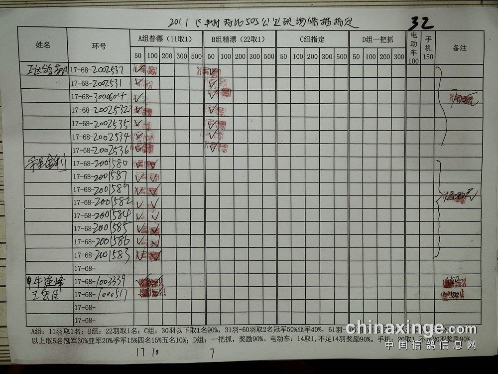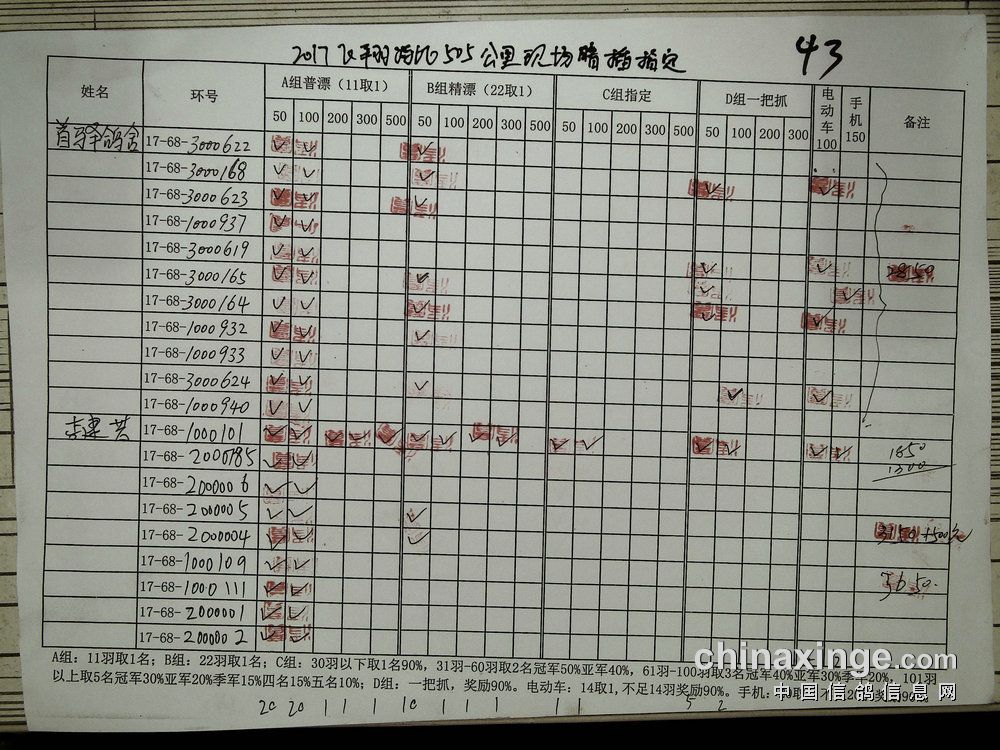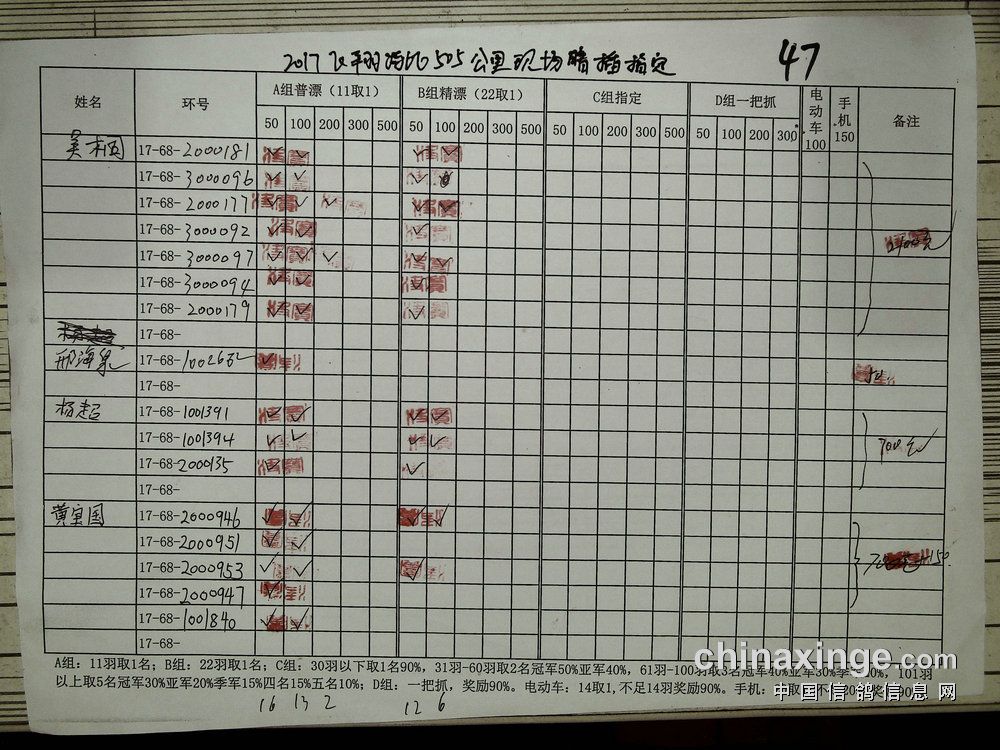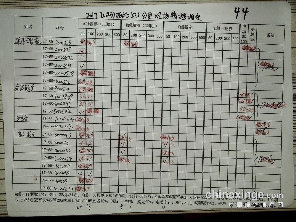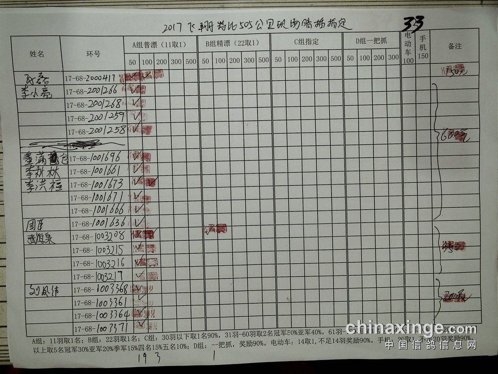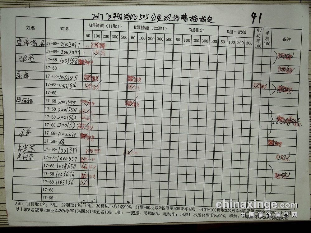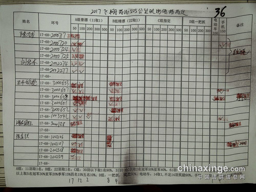 2017秋季飞翔赛鸽中心505公里-特比现场指定原单二