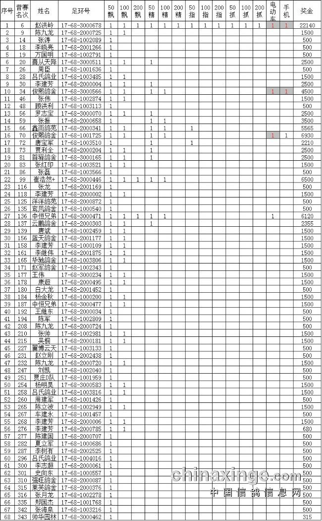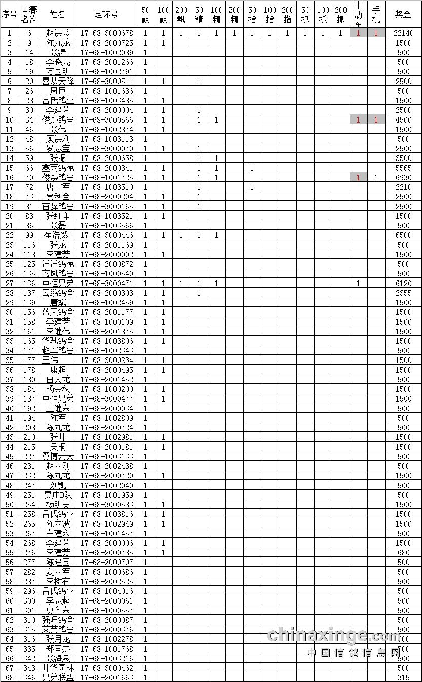 鸽舍赛绩