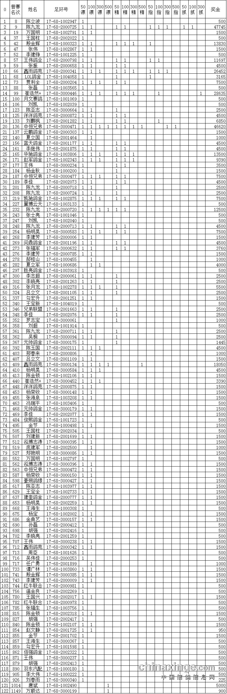 鸽舍赛绩