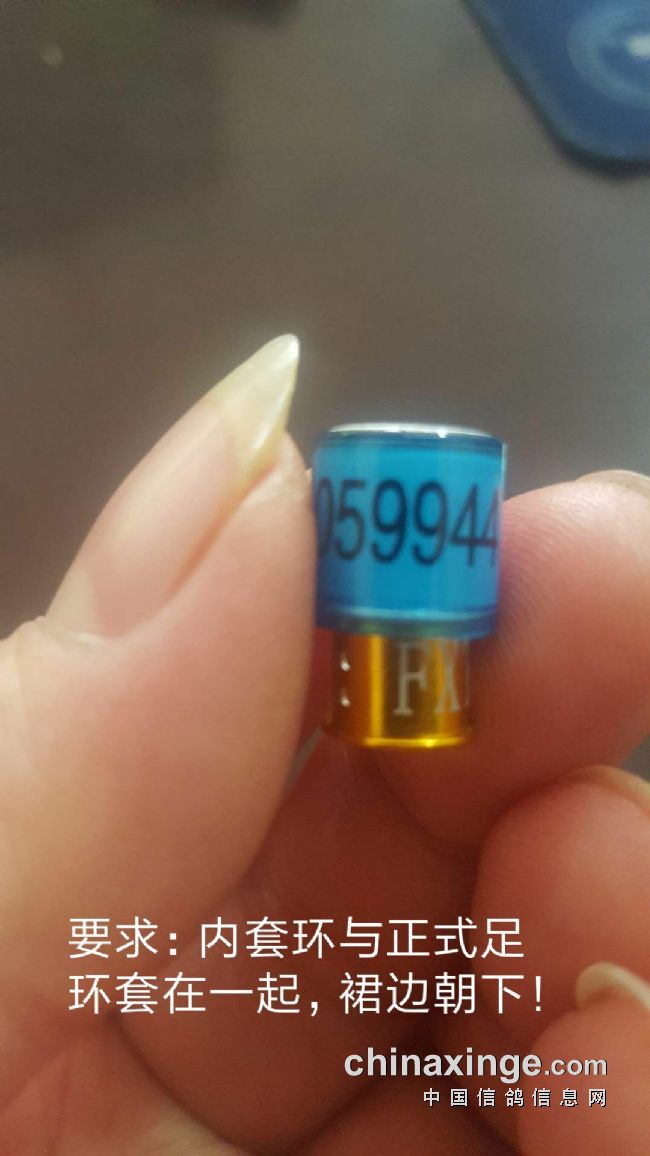 2.特比环赛鸽必须佩戴2018年国家正式足环,特制金属内套环。足环和内套环必须戴于参赛鸽的同一脚上,内套环群边必须朝下,另一脚佩戴【科汇,爱羽】死口电子环,否则成绩无效。特比环必须完好无损,由各种原因导致特比环异常、破损、丢失或无字,均与本俱乐部无关,如遇信鸽腿粗或腿细造成足环箍腿或脱落,均与本俱乐部无关,由鸽友自行掌握鸽腿和环的尺寸。
