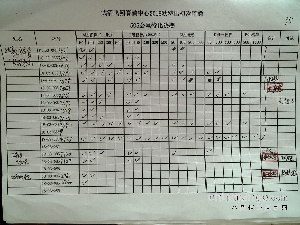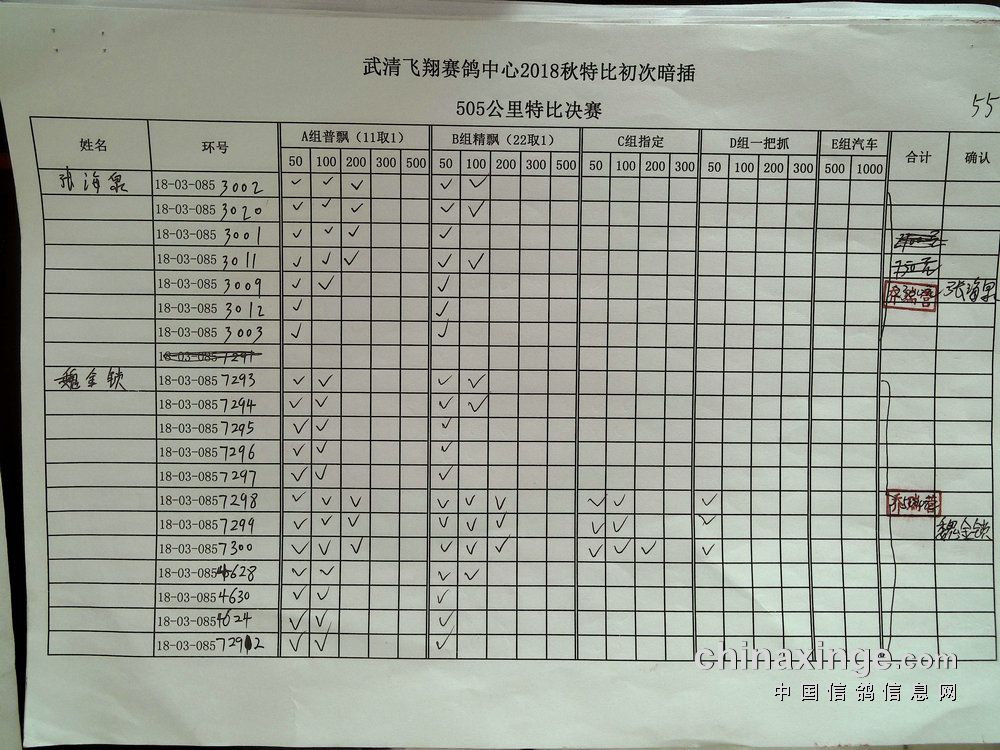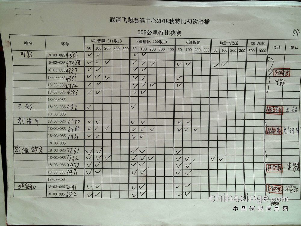 鸽舍赛绩