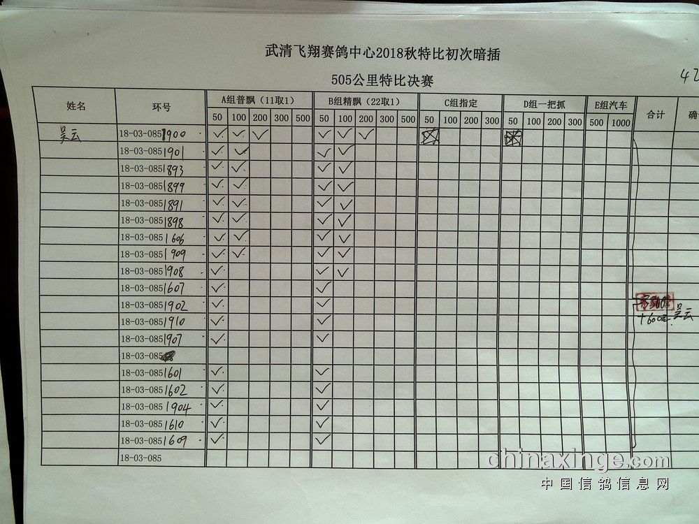 21春飞翔赛鸽俱乐部500公里指定原单(特比)