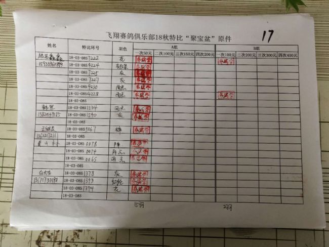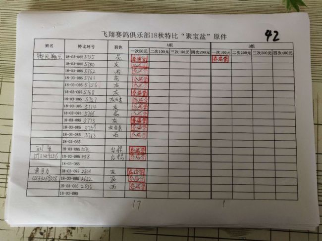 请广大鸽友仔细核对环号羽色,两日后生效,如有错