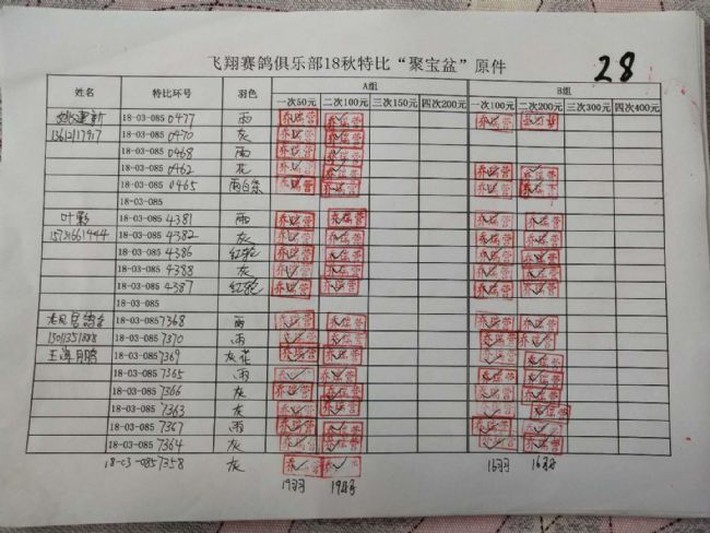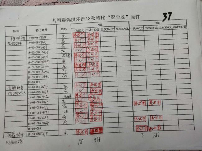 A组;第二次‘聚宝盆’共计1122羽!失格78羽!