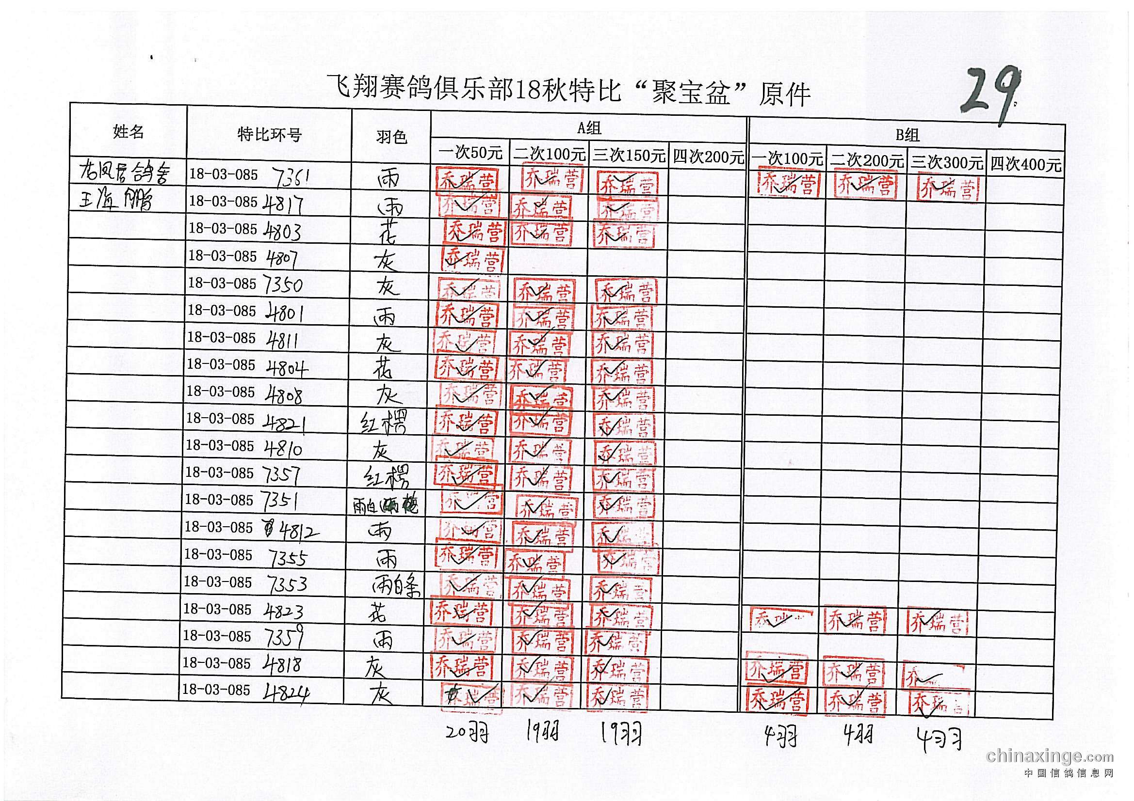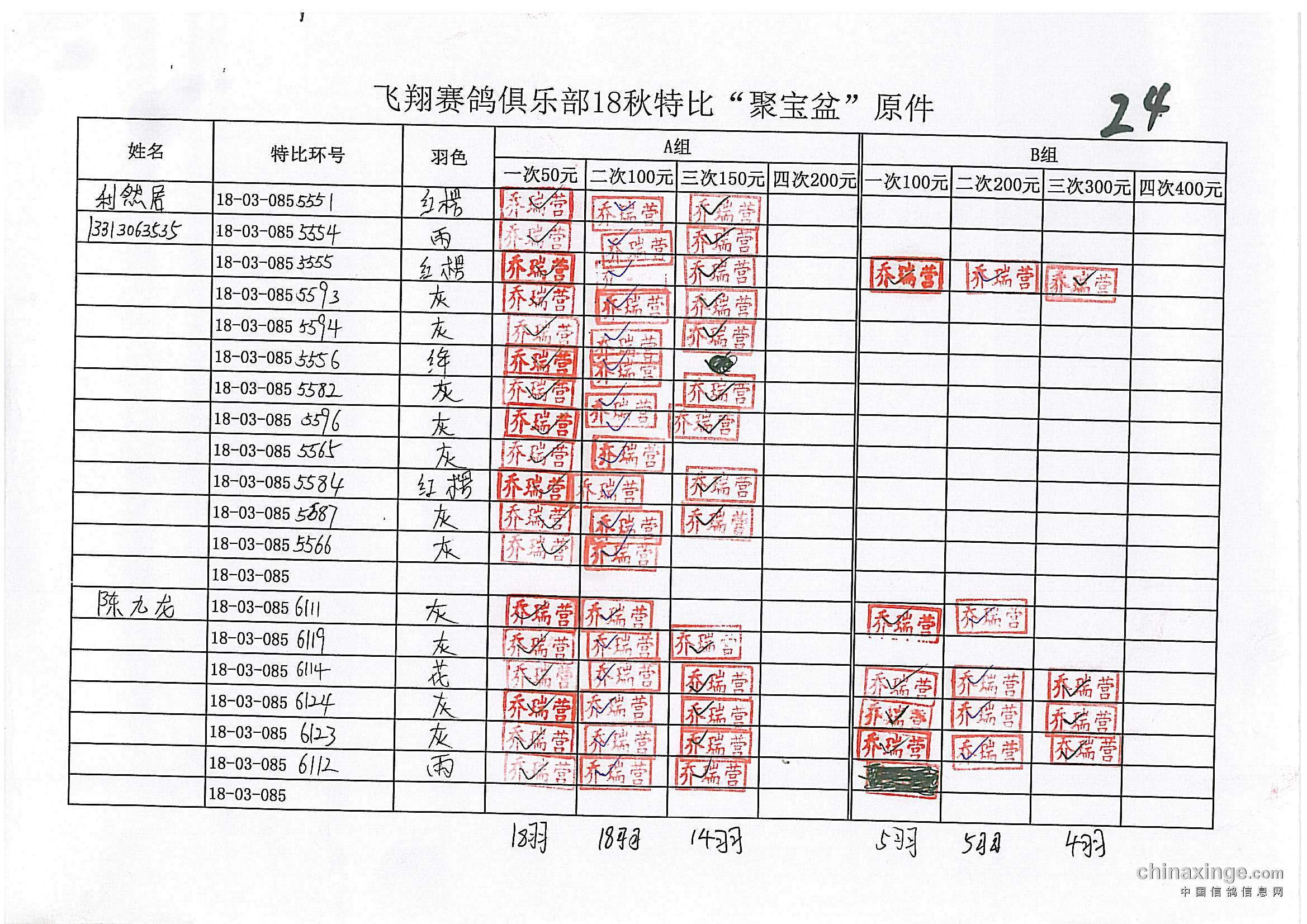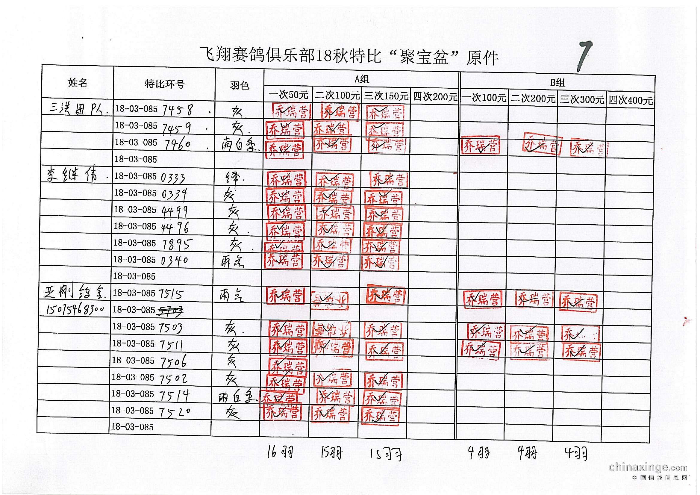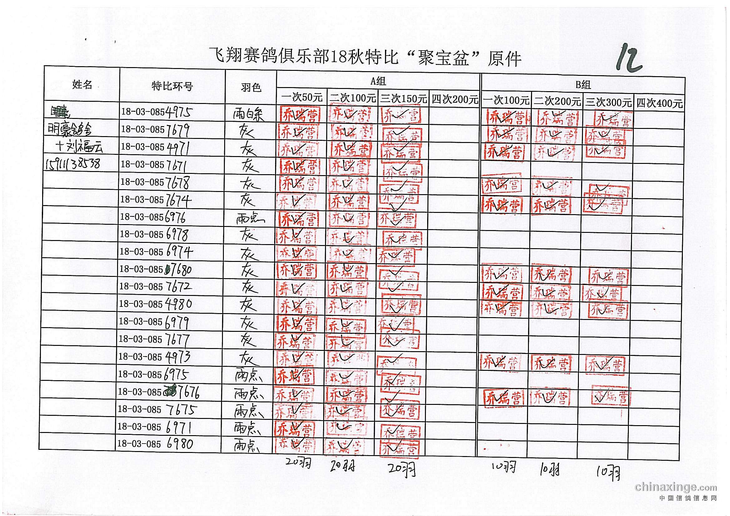 鸽舍赛绩