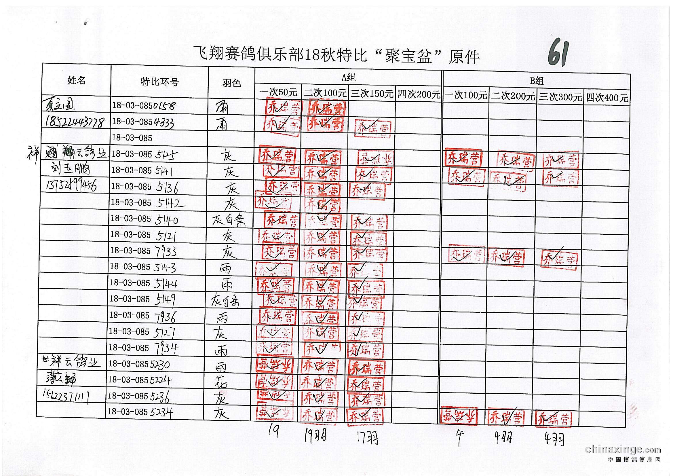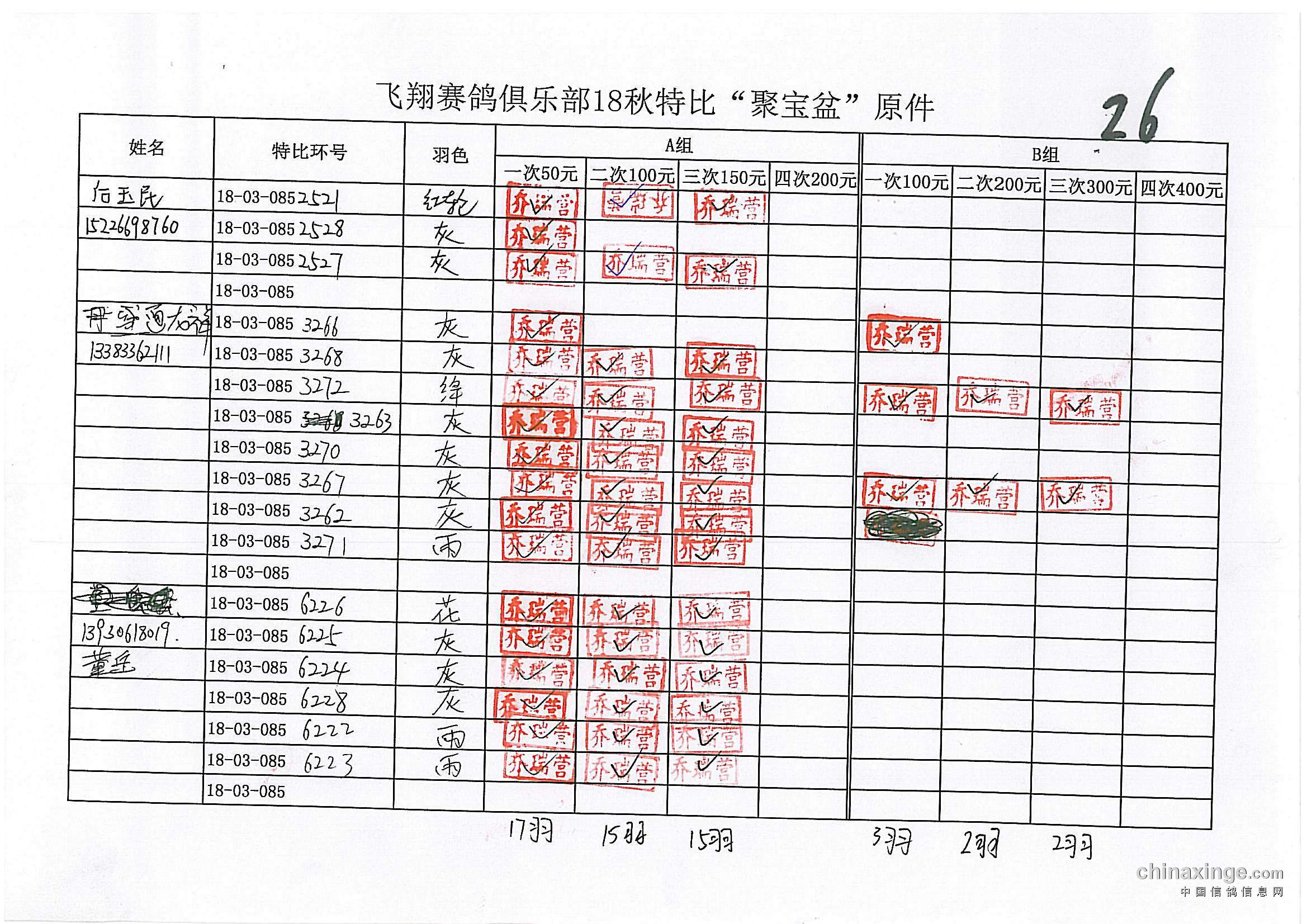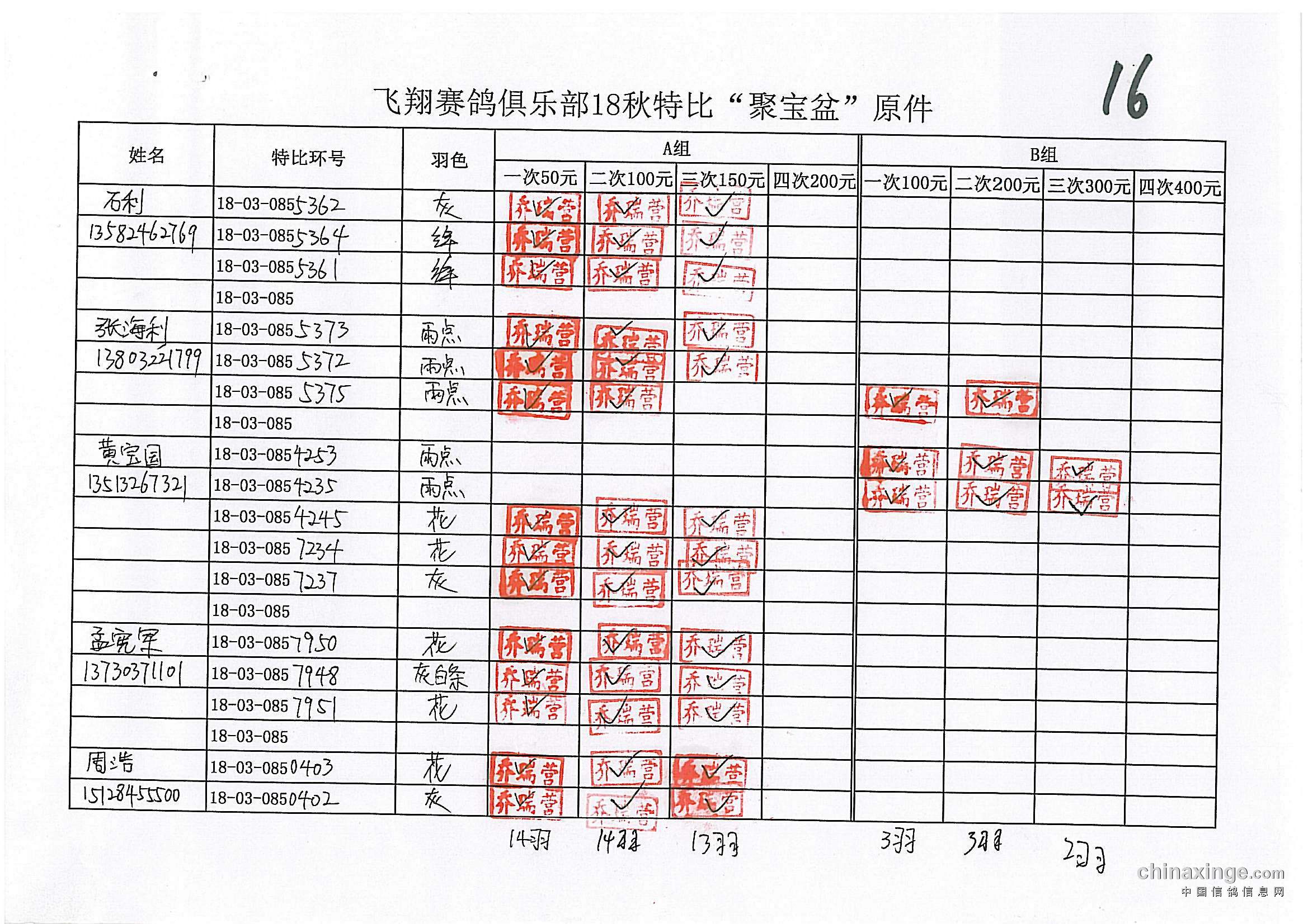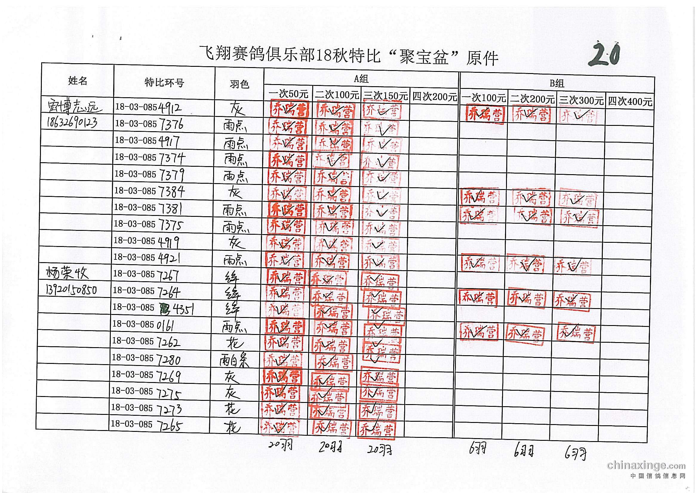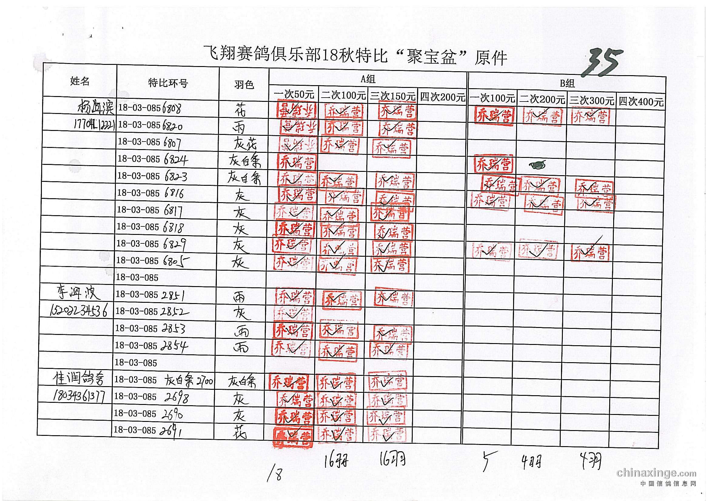 鸽舍赛绩