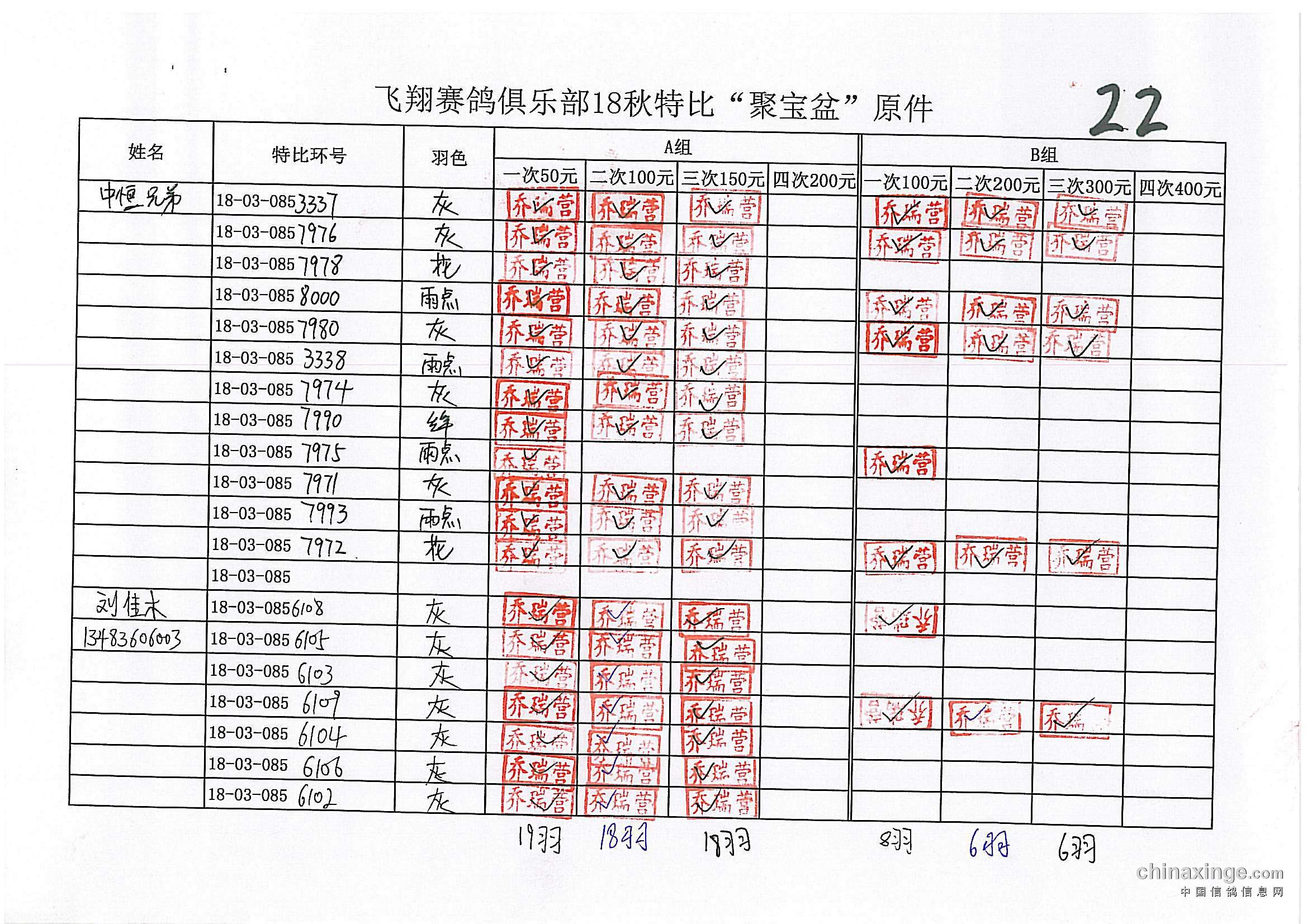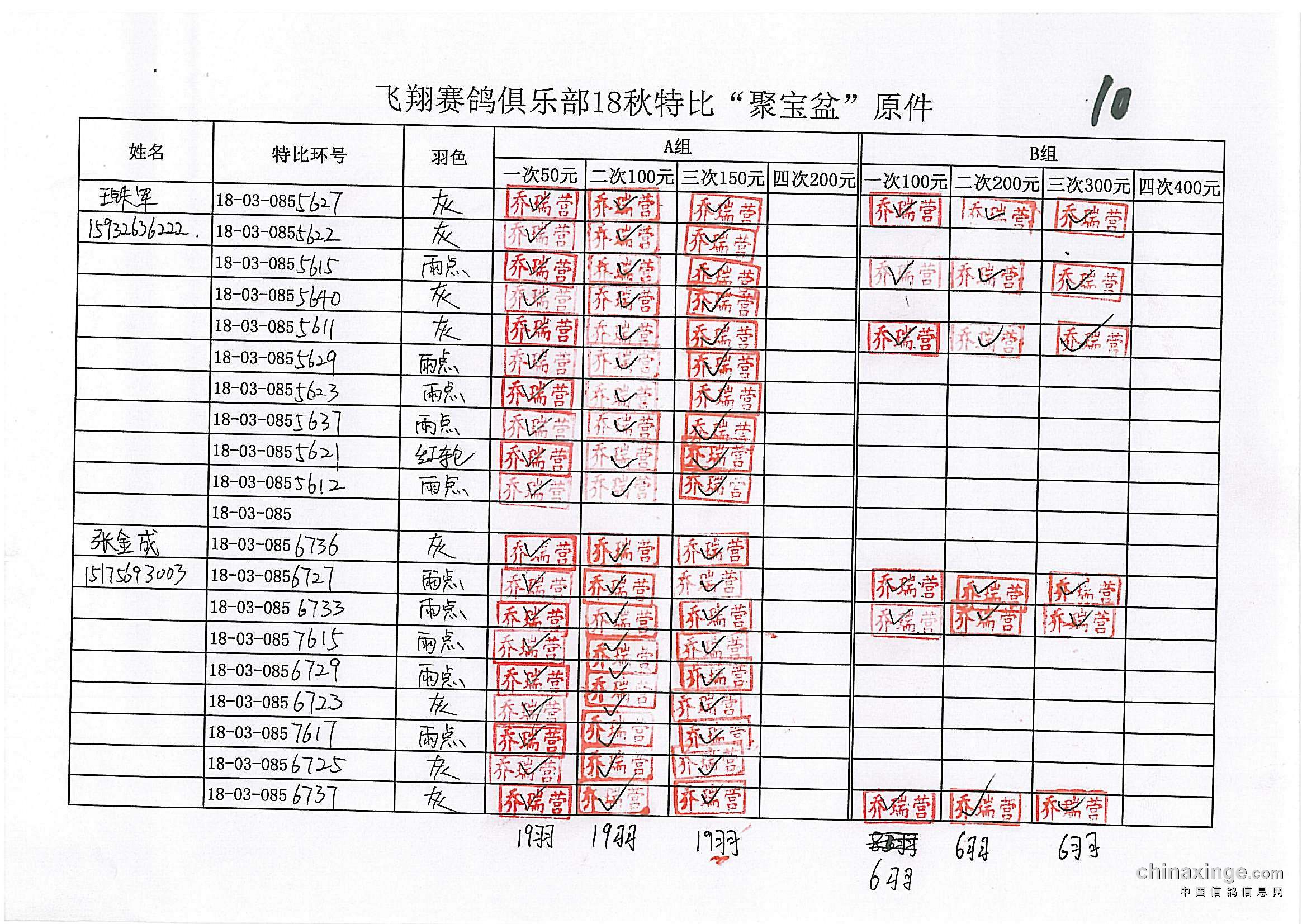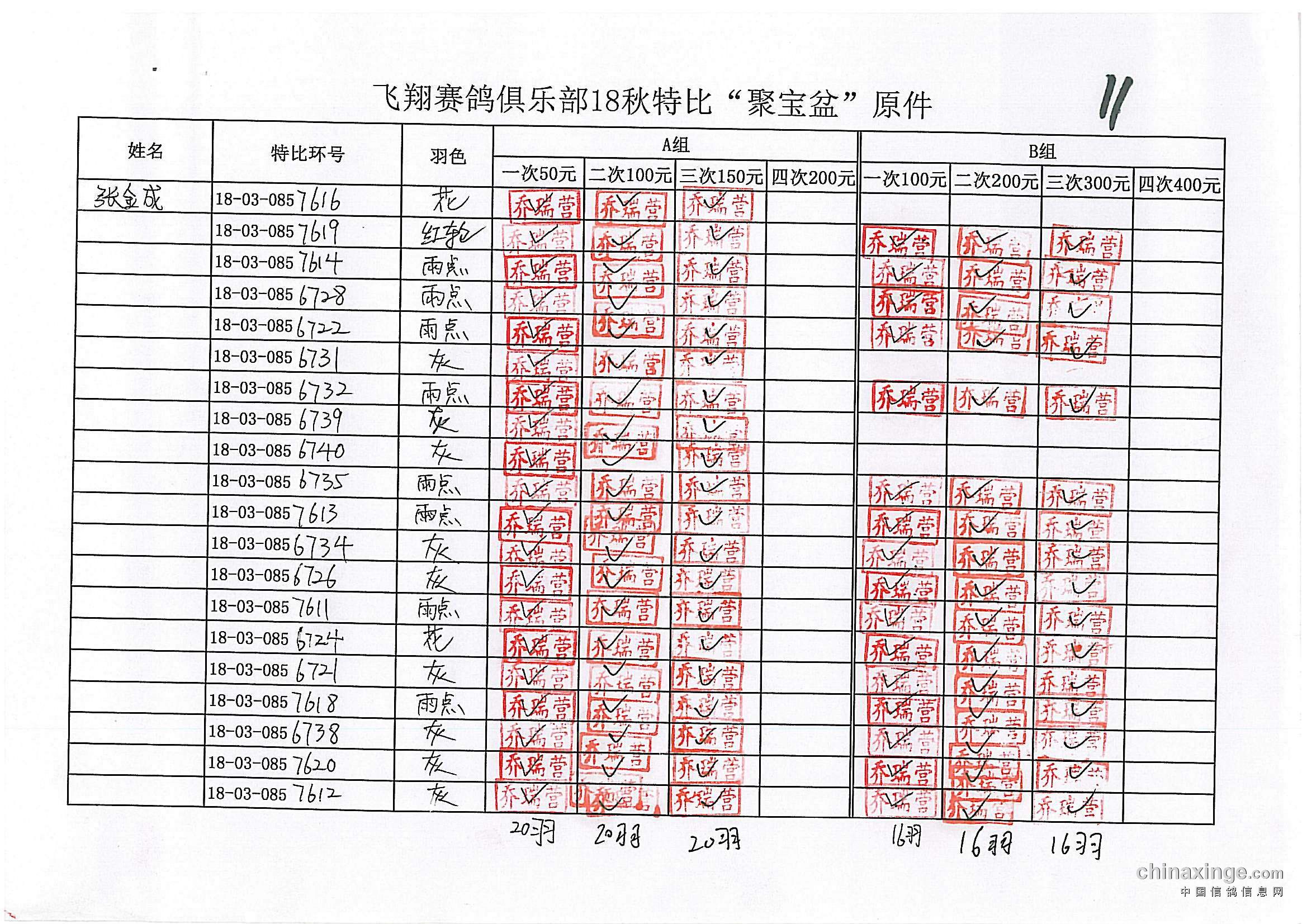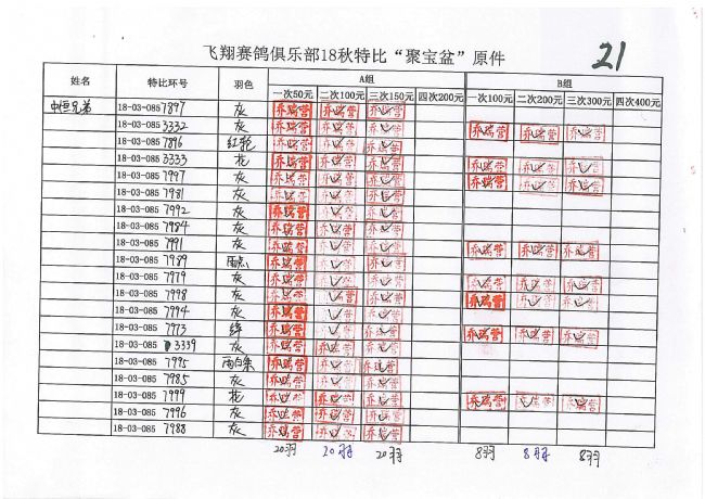 21春飞翔赛鸽俱乐部330公里前十风采