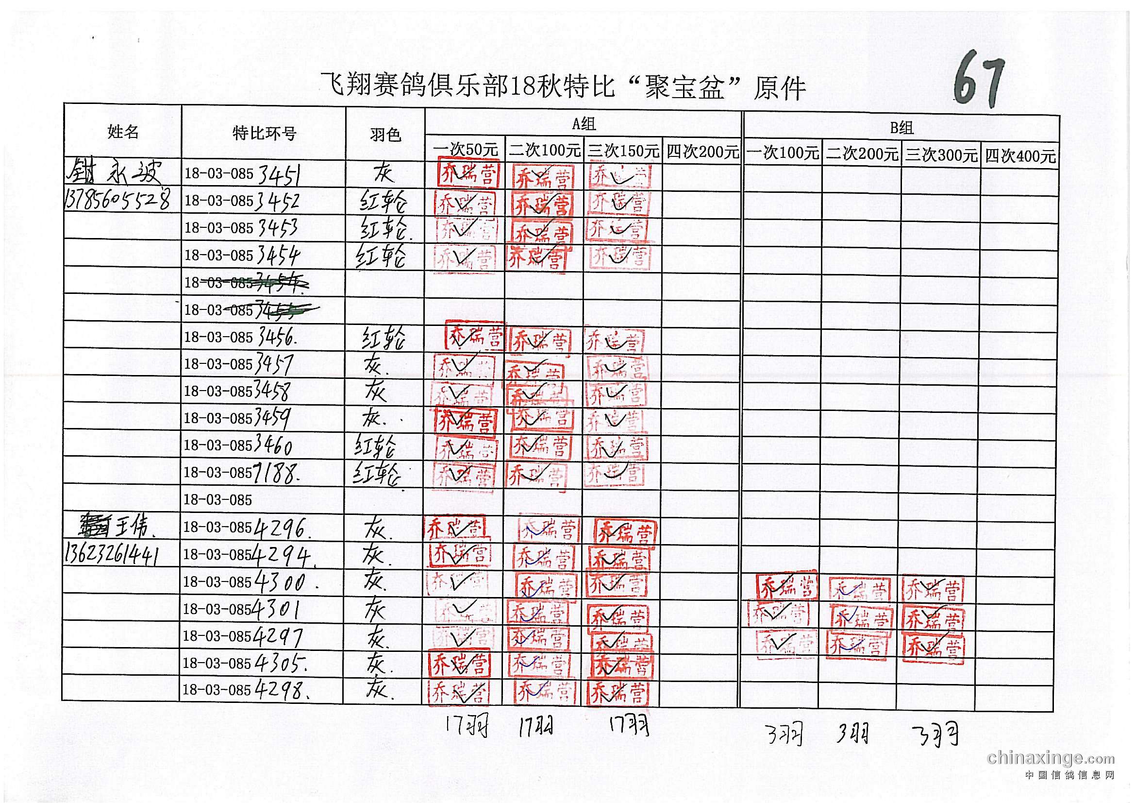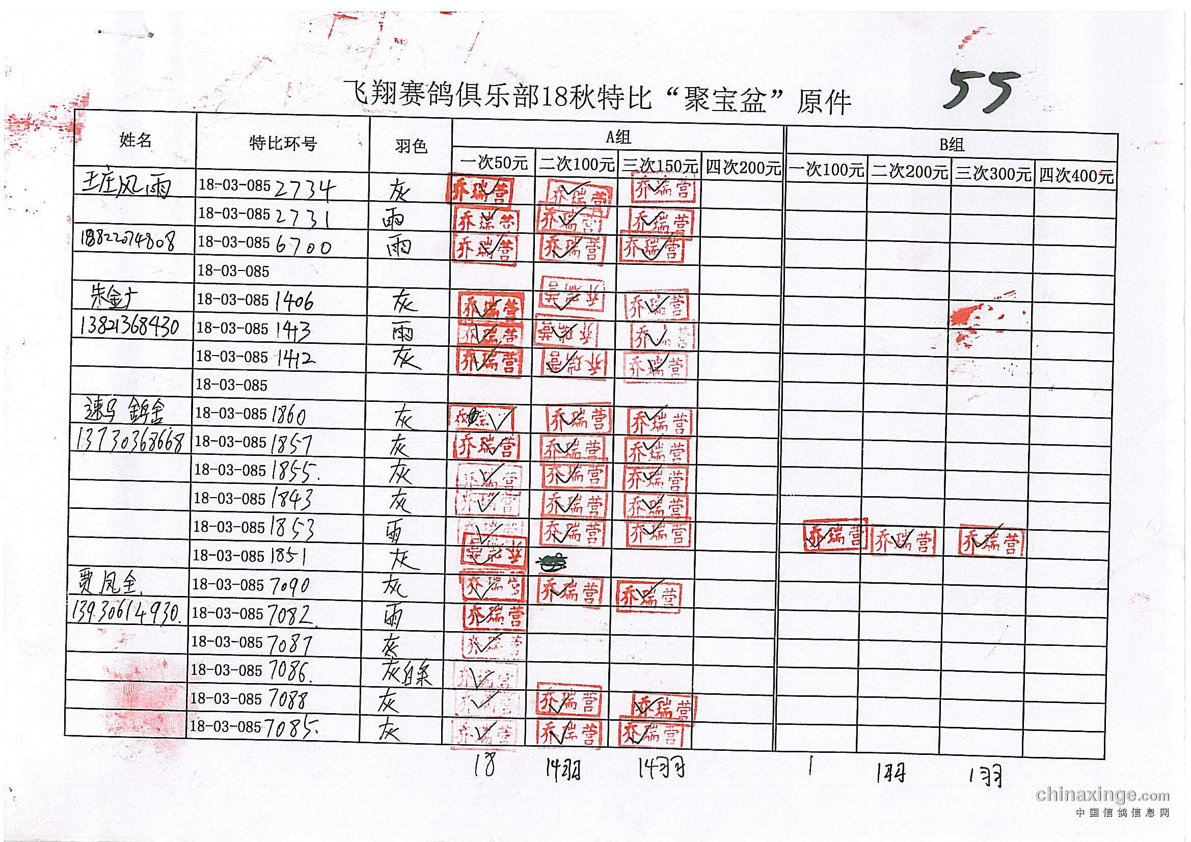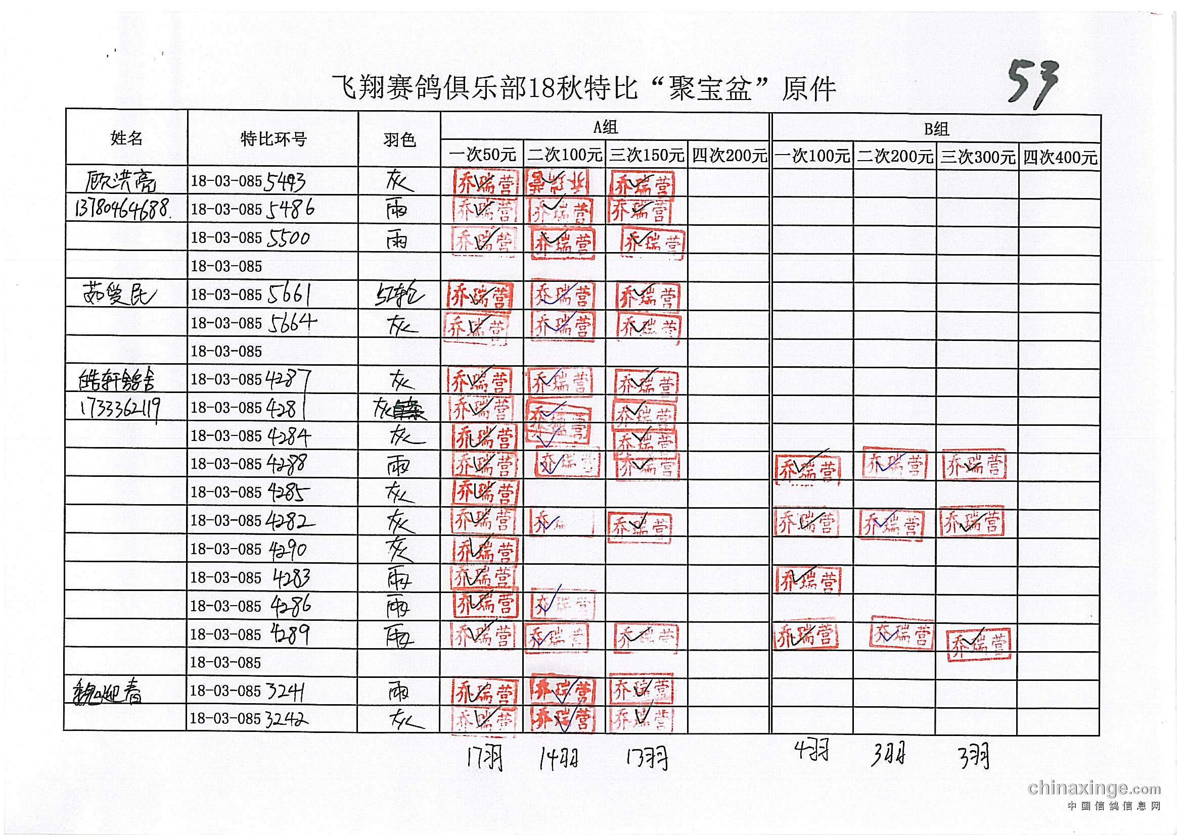 21春飞翔赛鸽俱乐部330公里前十风采