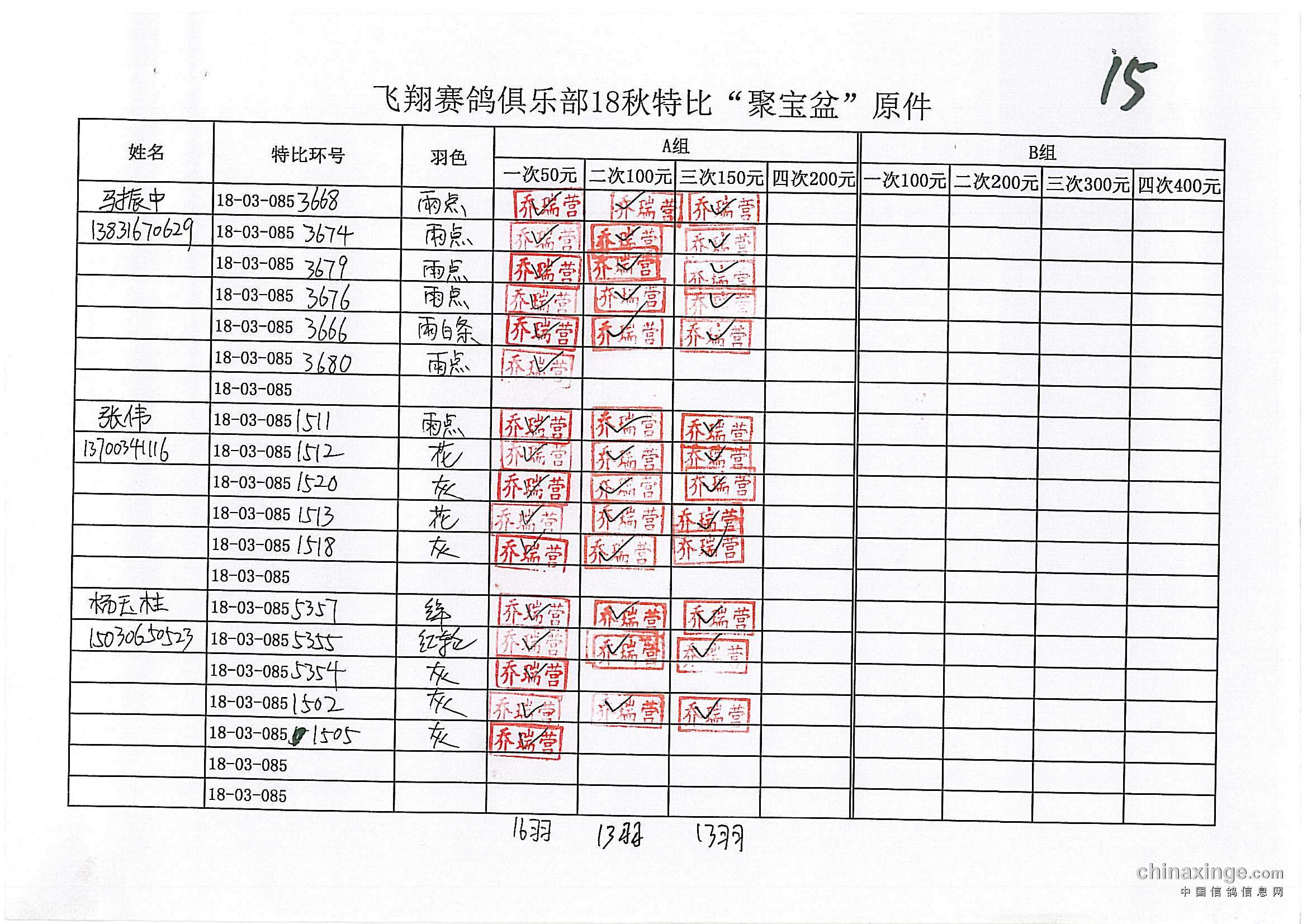 21春飞翔赛鸽俱乐部500公里指定原单(特比)