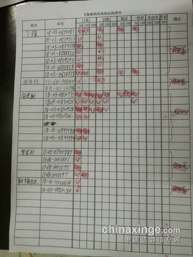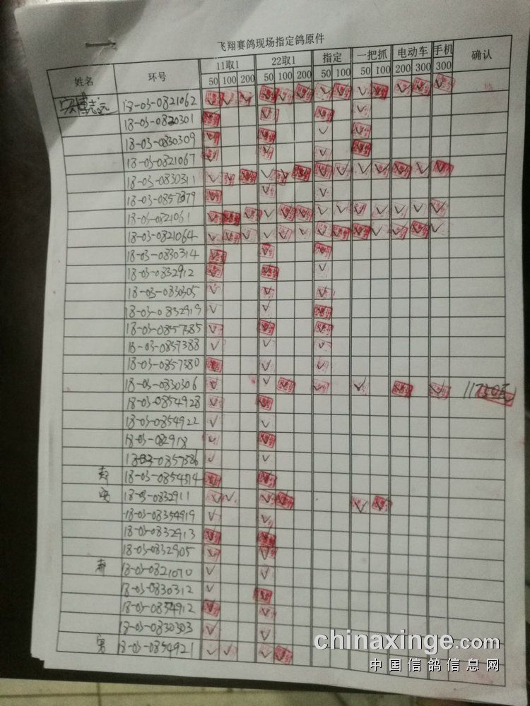 50指定:共计124羽,取5名。