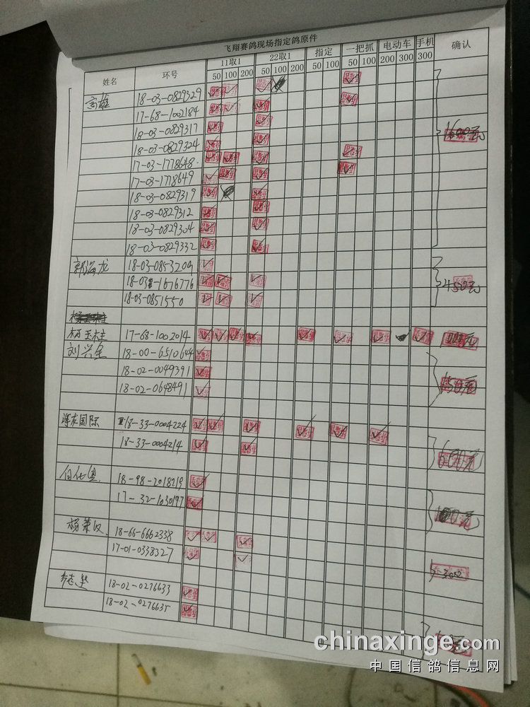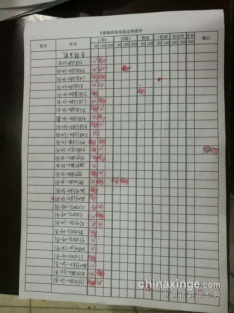 100指定:共计16羽,取1名。