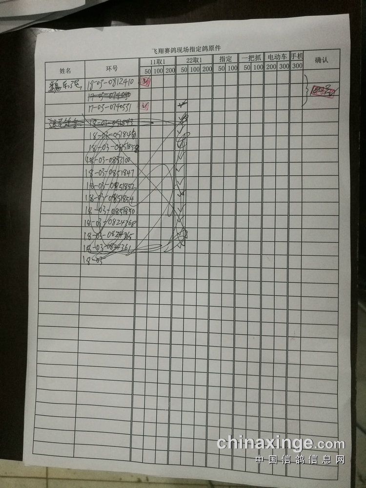 300电动车:共计14羽,取2名。