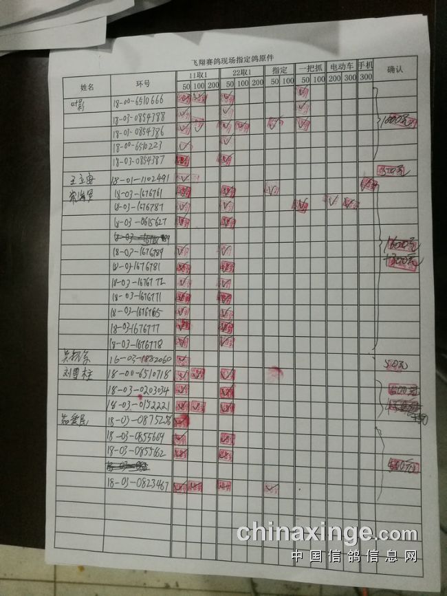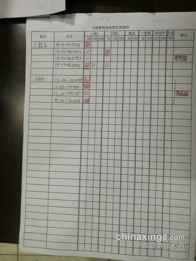 18秋飞翔赛鸽中心230公里百杯赛指定原单二
