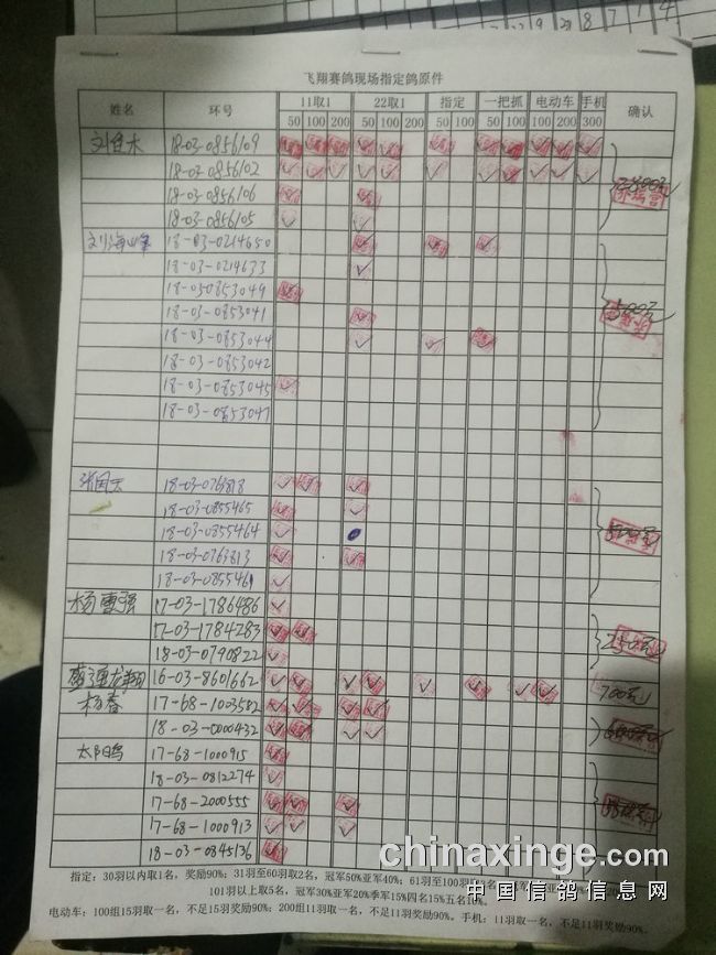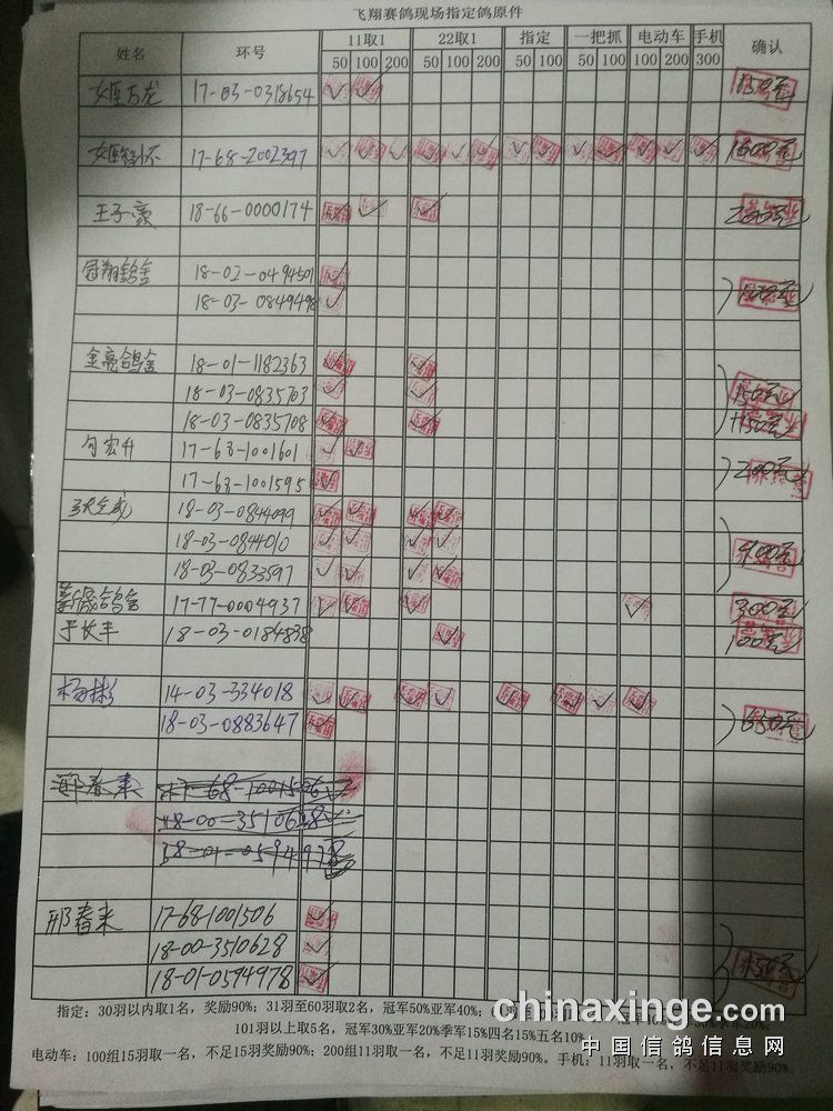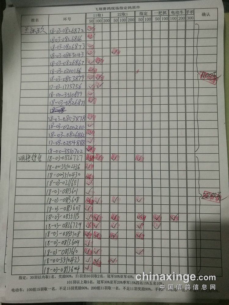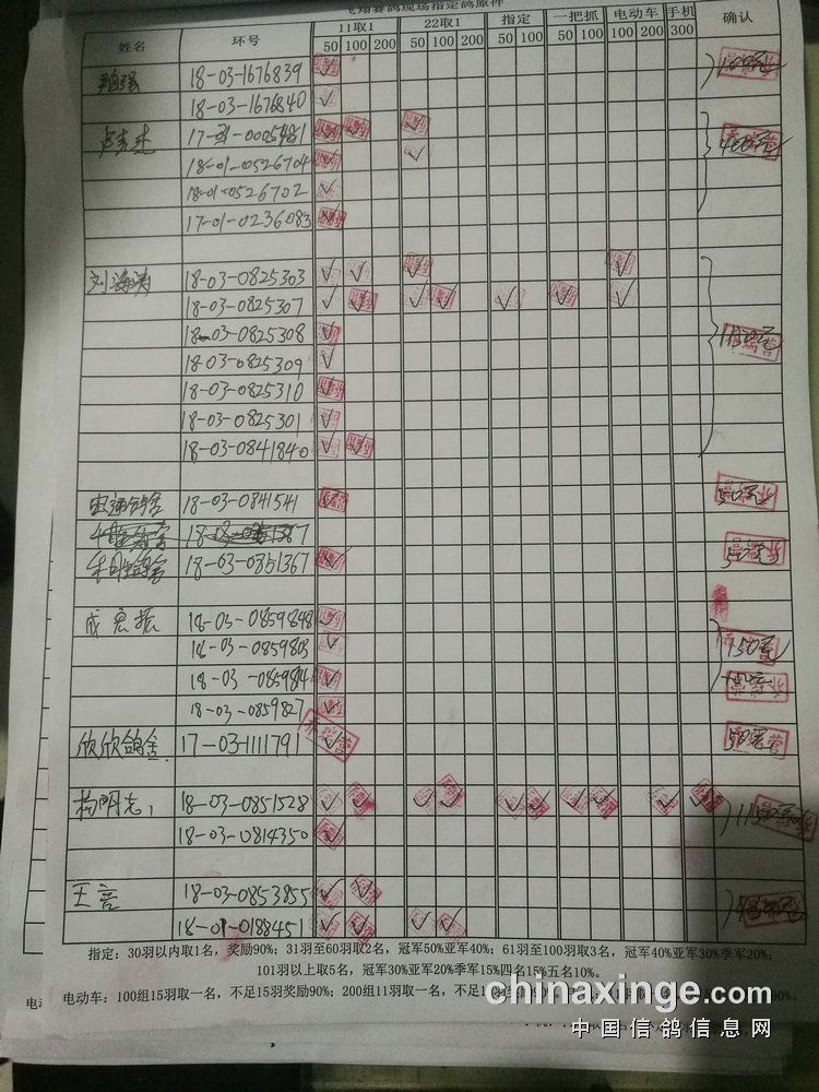 200组:共计12羽,取2名。